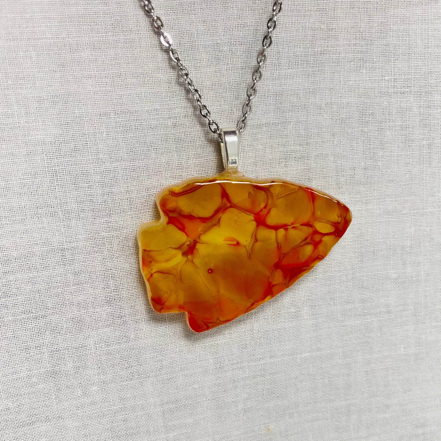 A gorgeous arrowhead necklace in KC Chiefs colors.