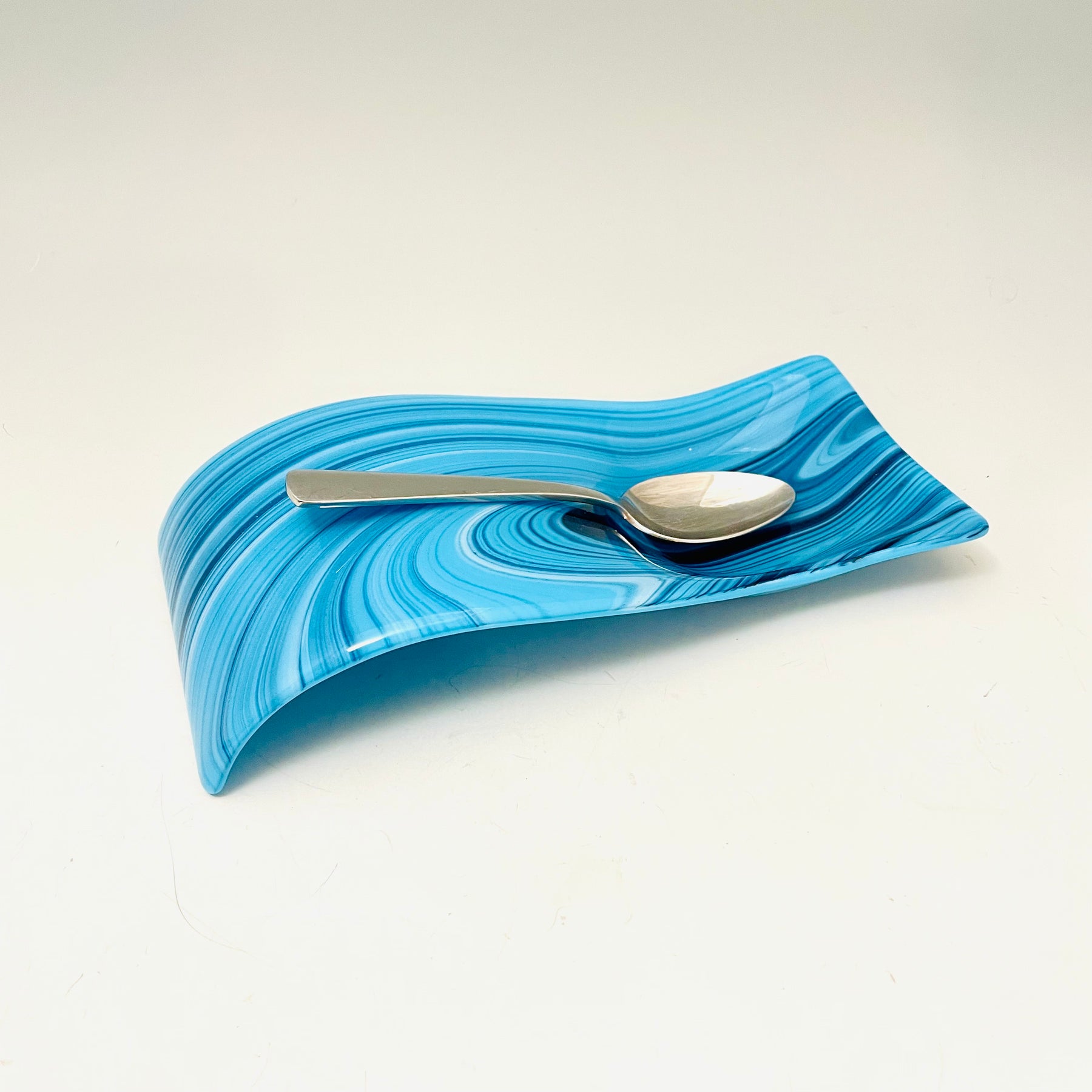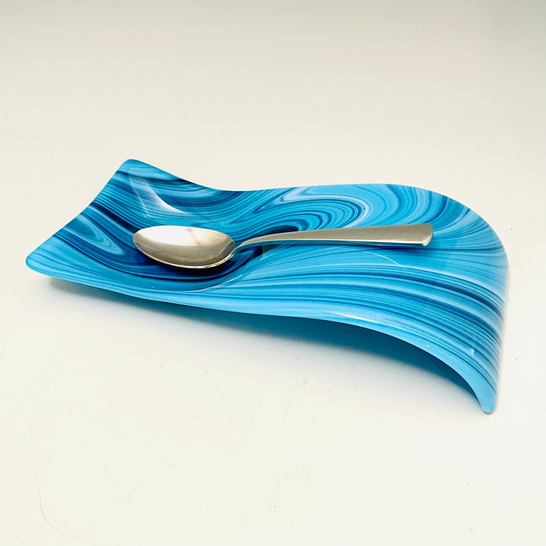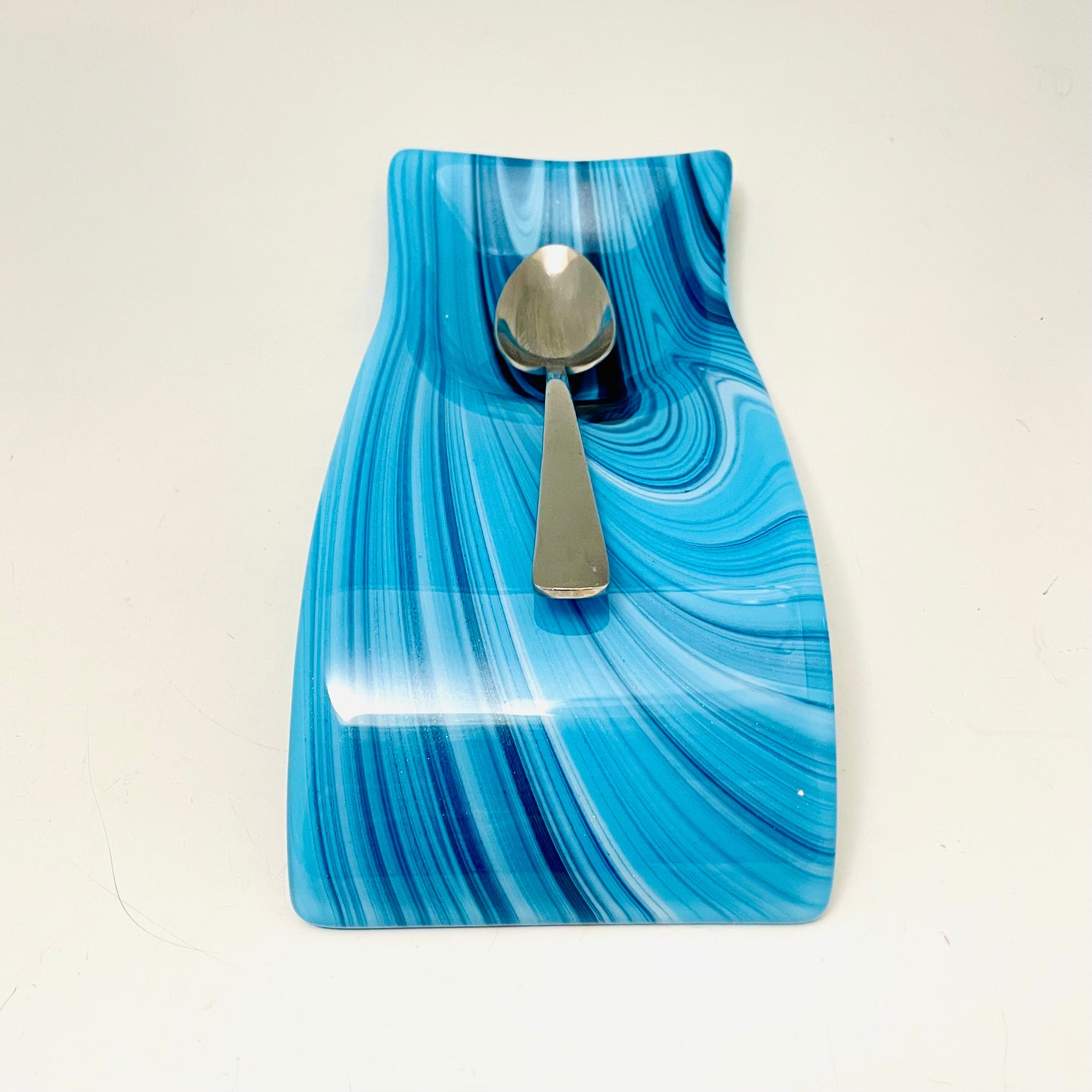 Shimmering Blues and White Swirls Large Spoonrest
