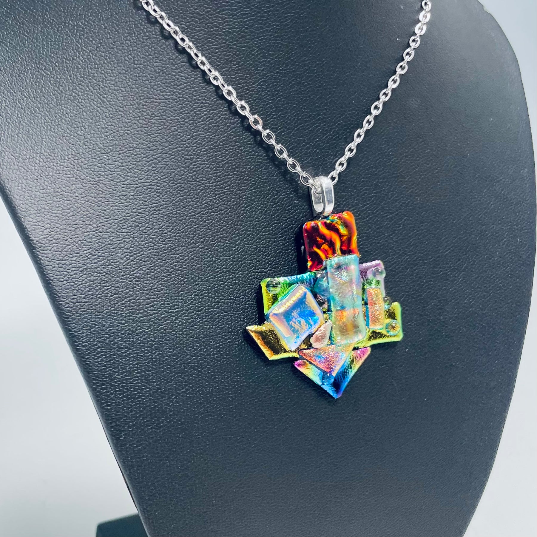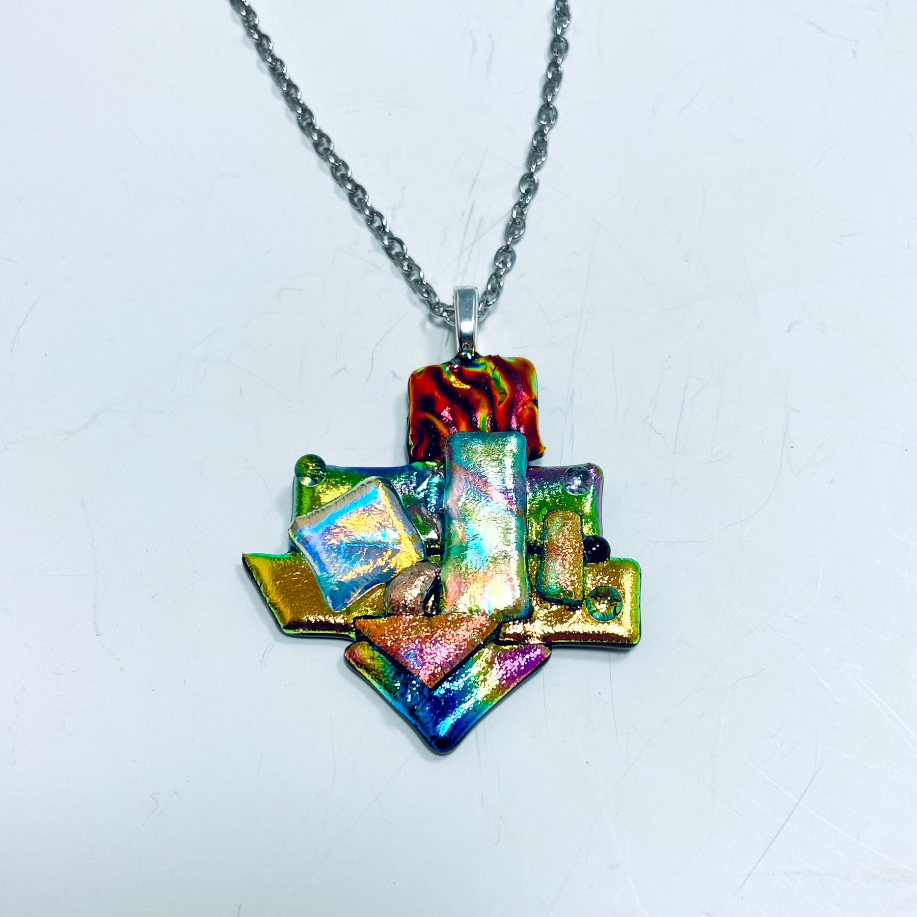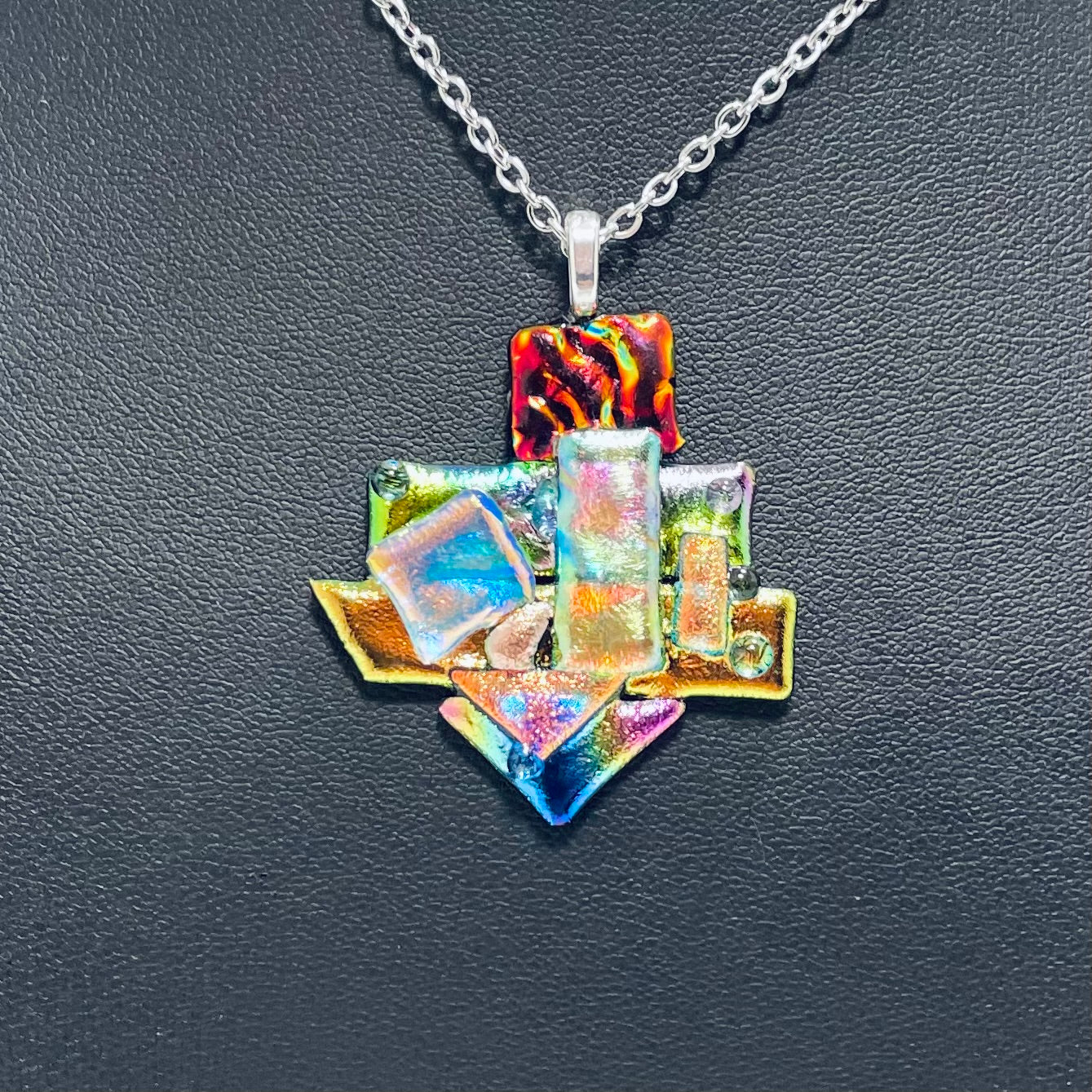 A beautiful abstract necklace made with sparkling dichroic glass and texture.