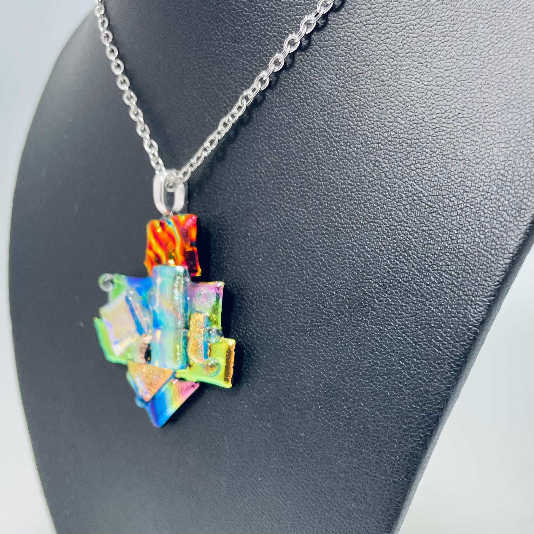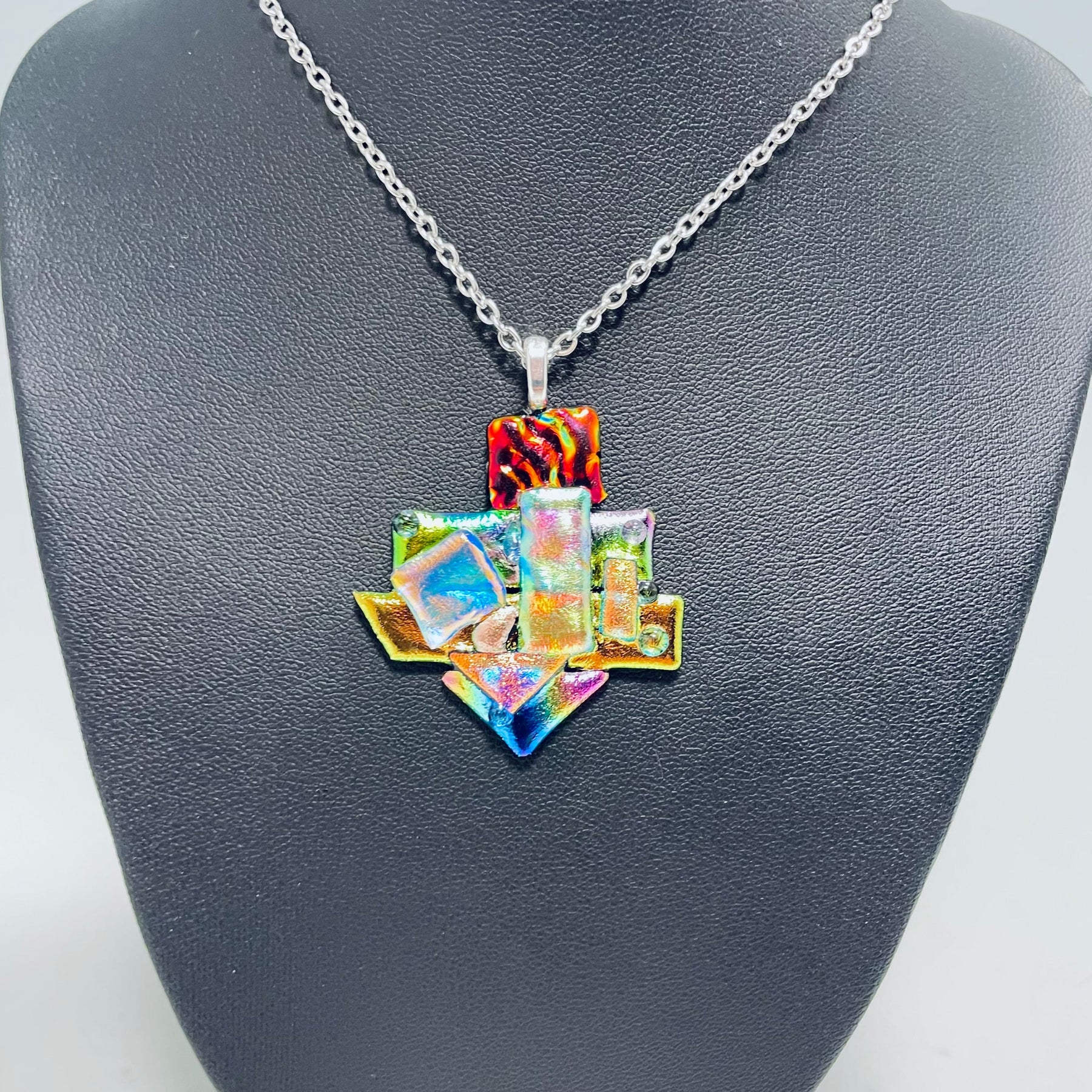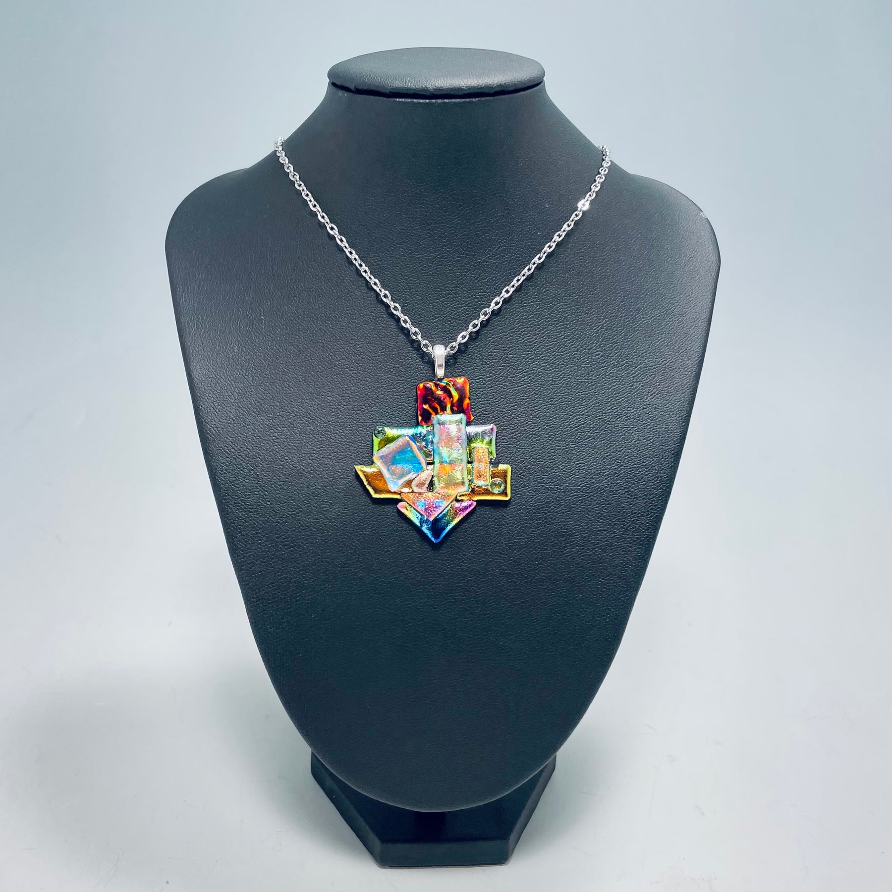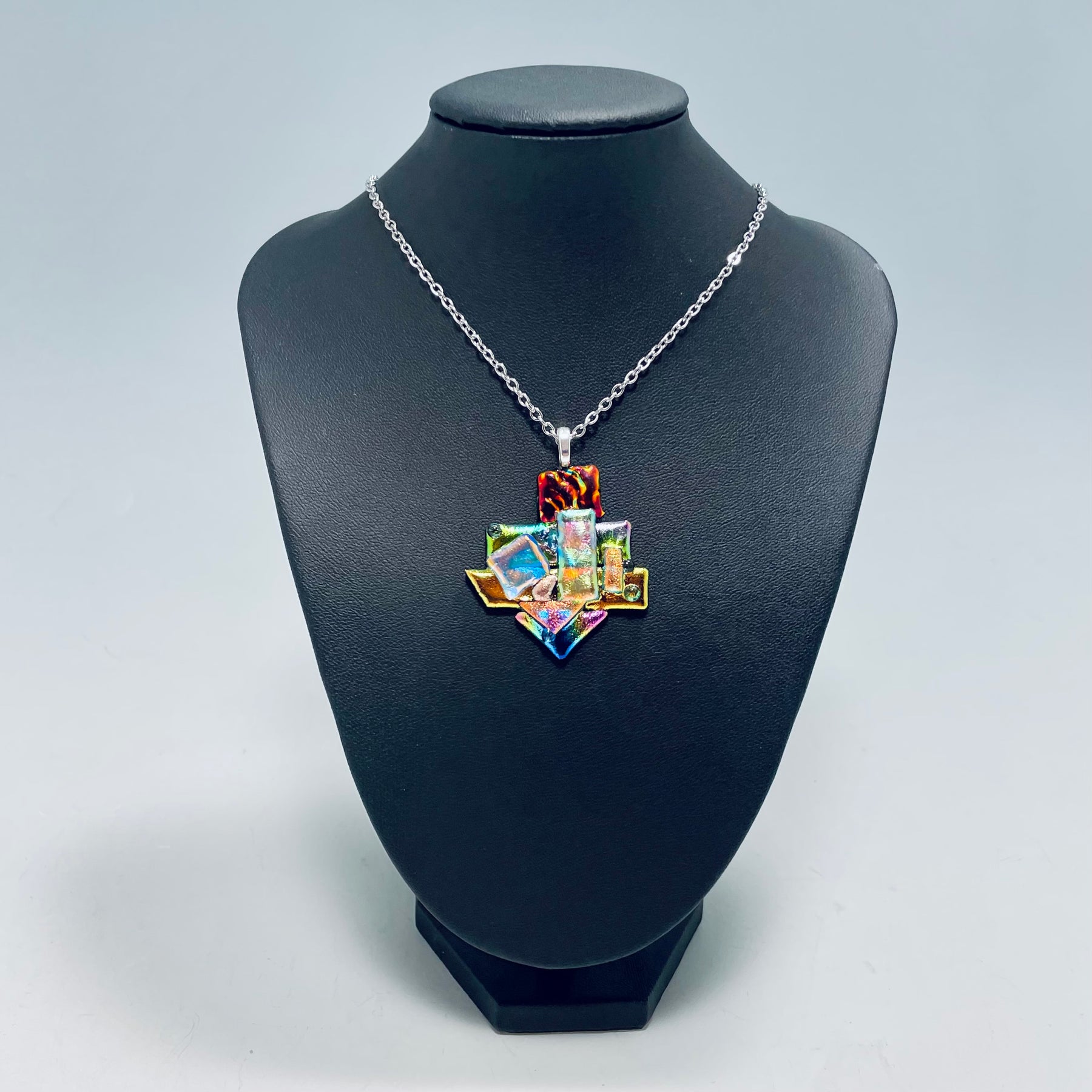A beautiful abstract necklace made with sparkling dichroic glass and texture.