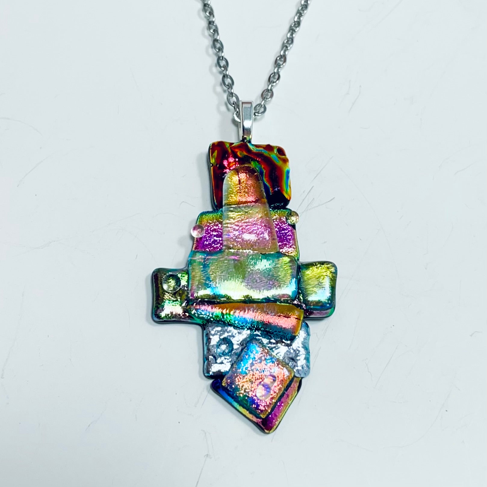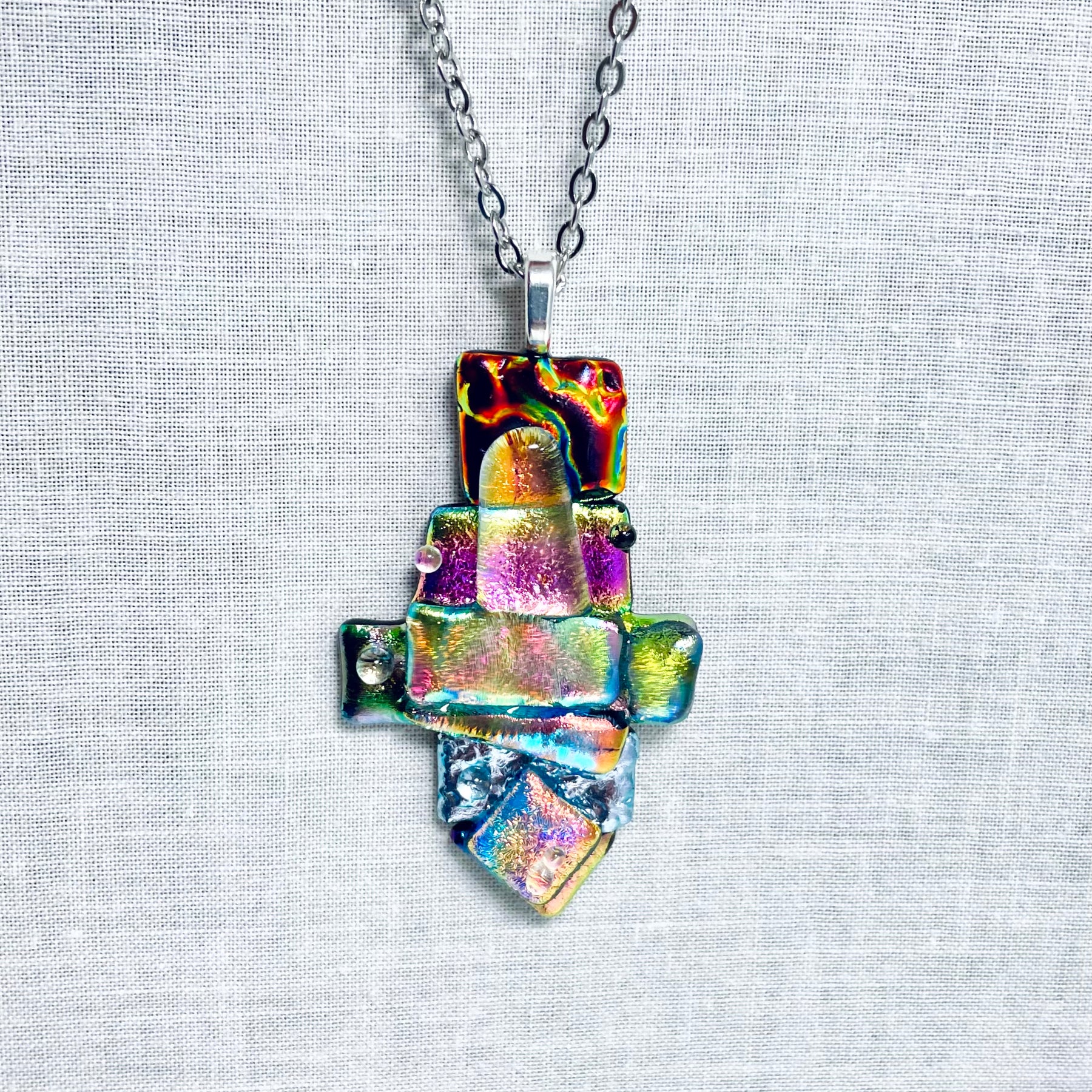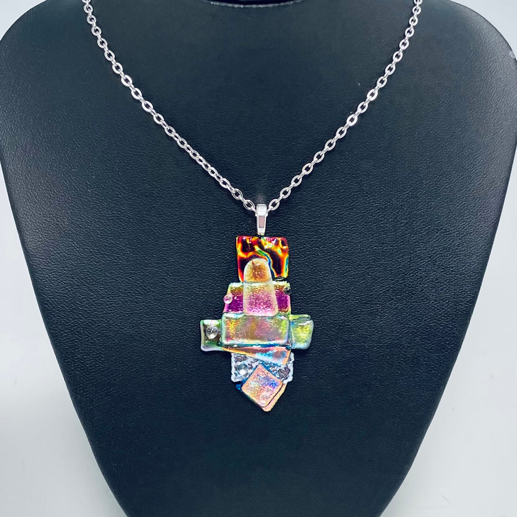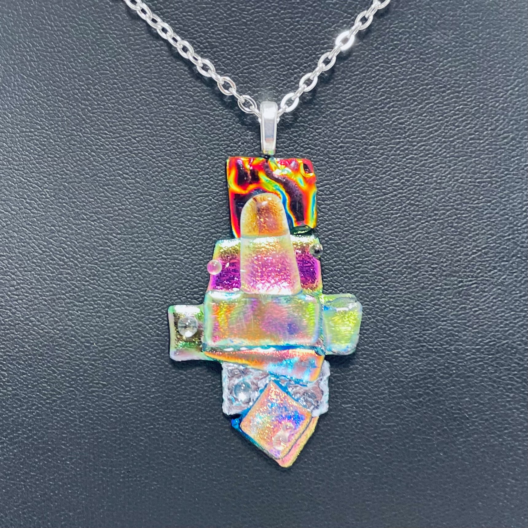 A beautiful abstract necklace made with sparkling dichroic glass and texture.