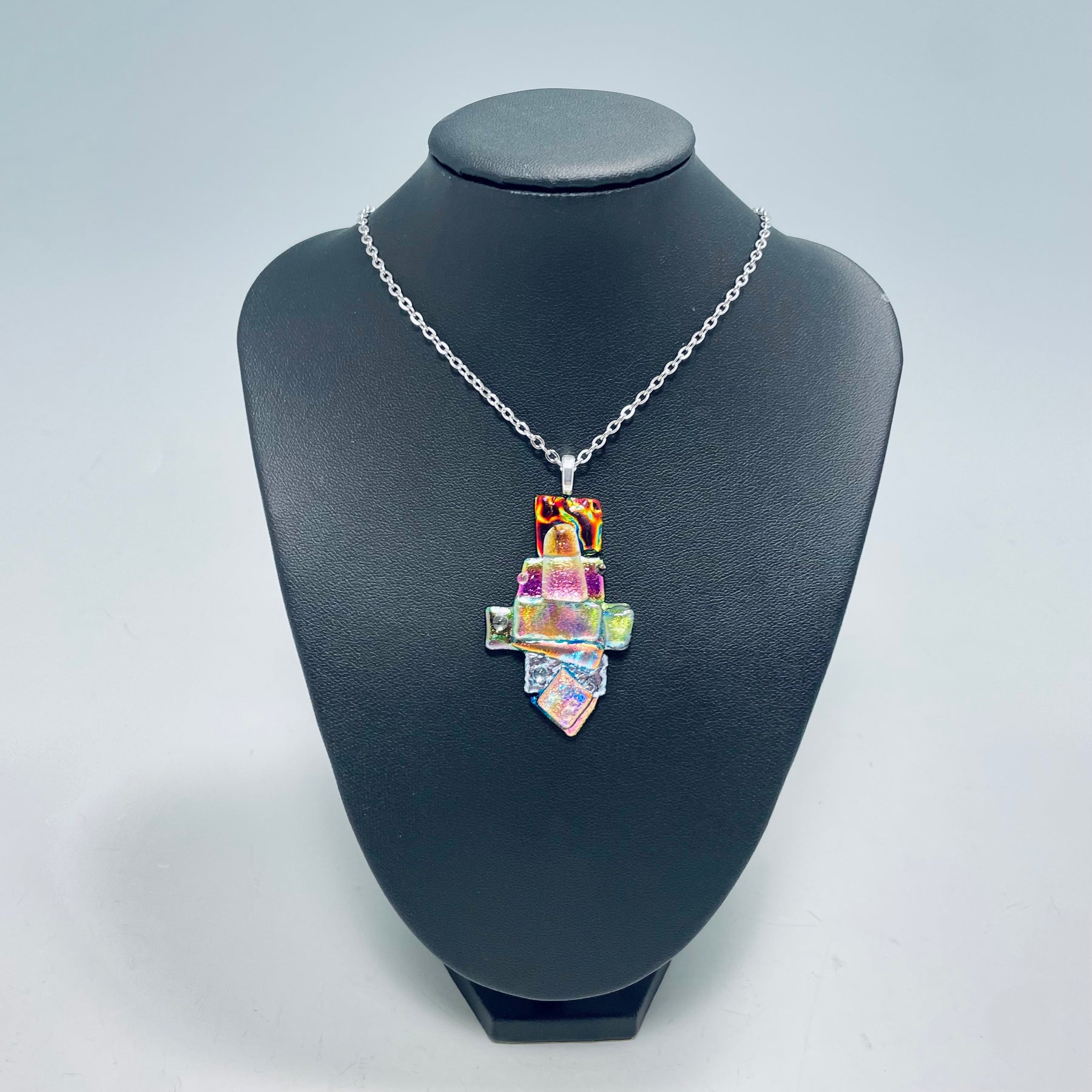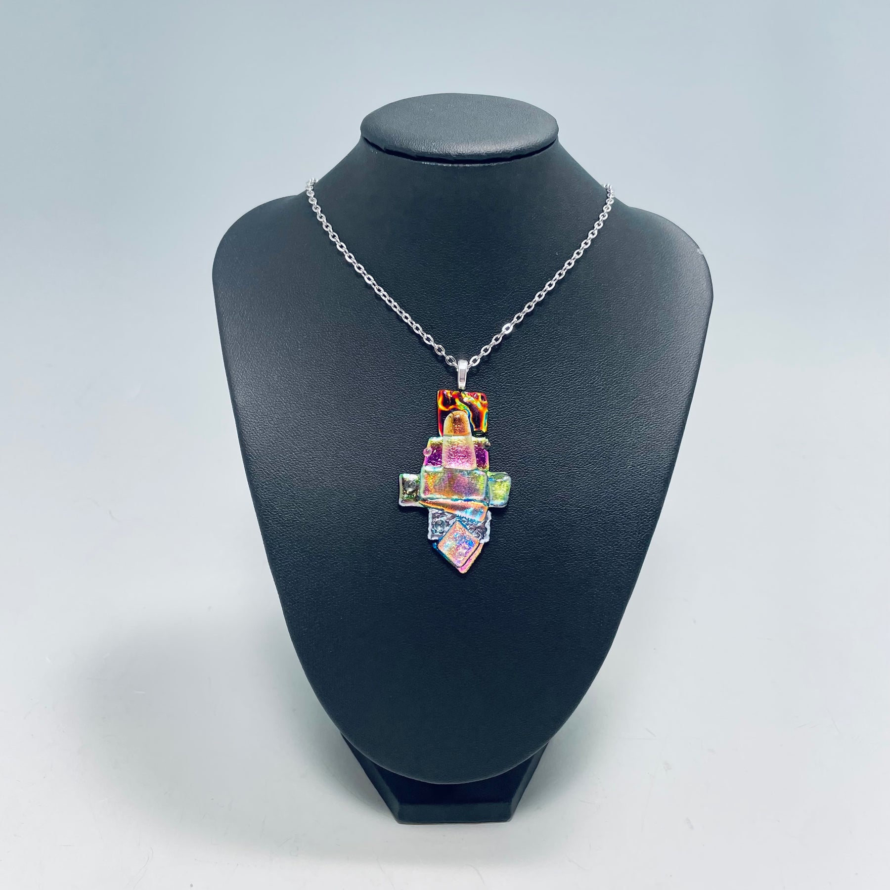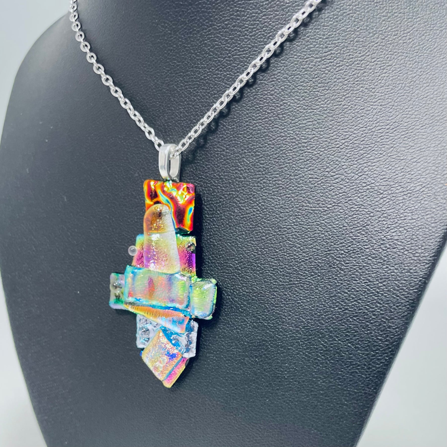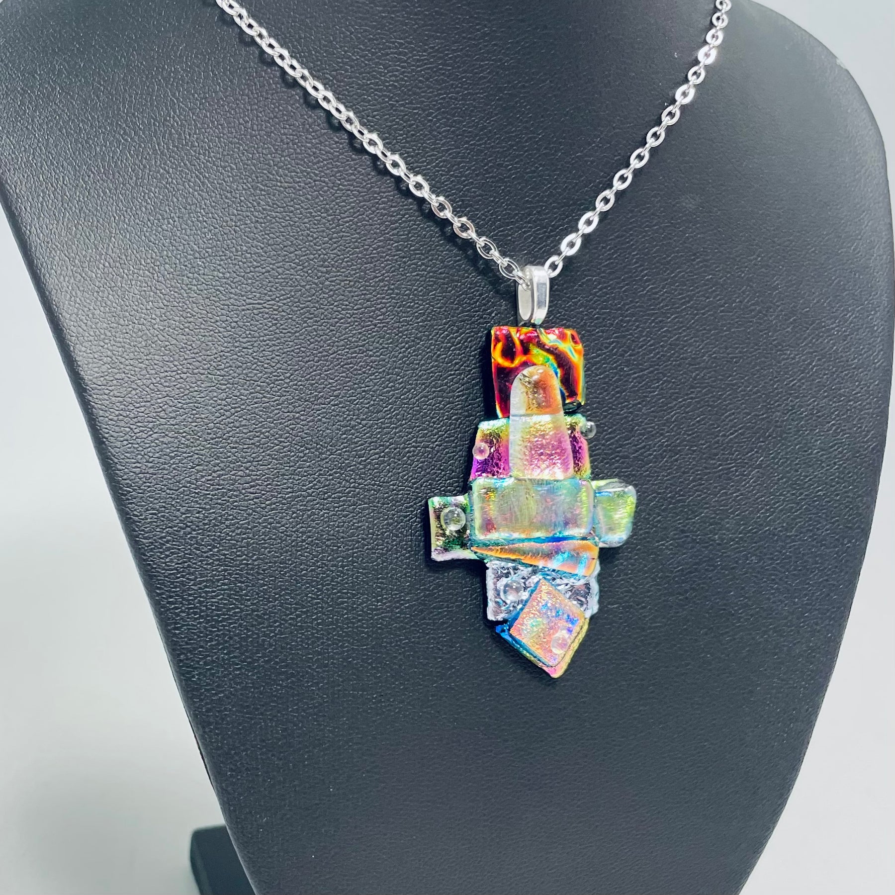 A beautiful abstract necklace made with sparkling dichroic glass and texture.