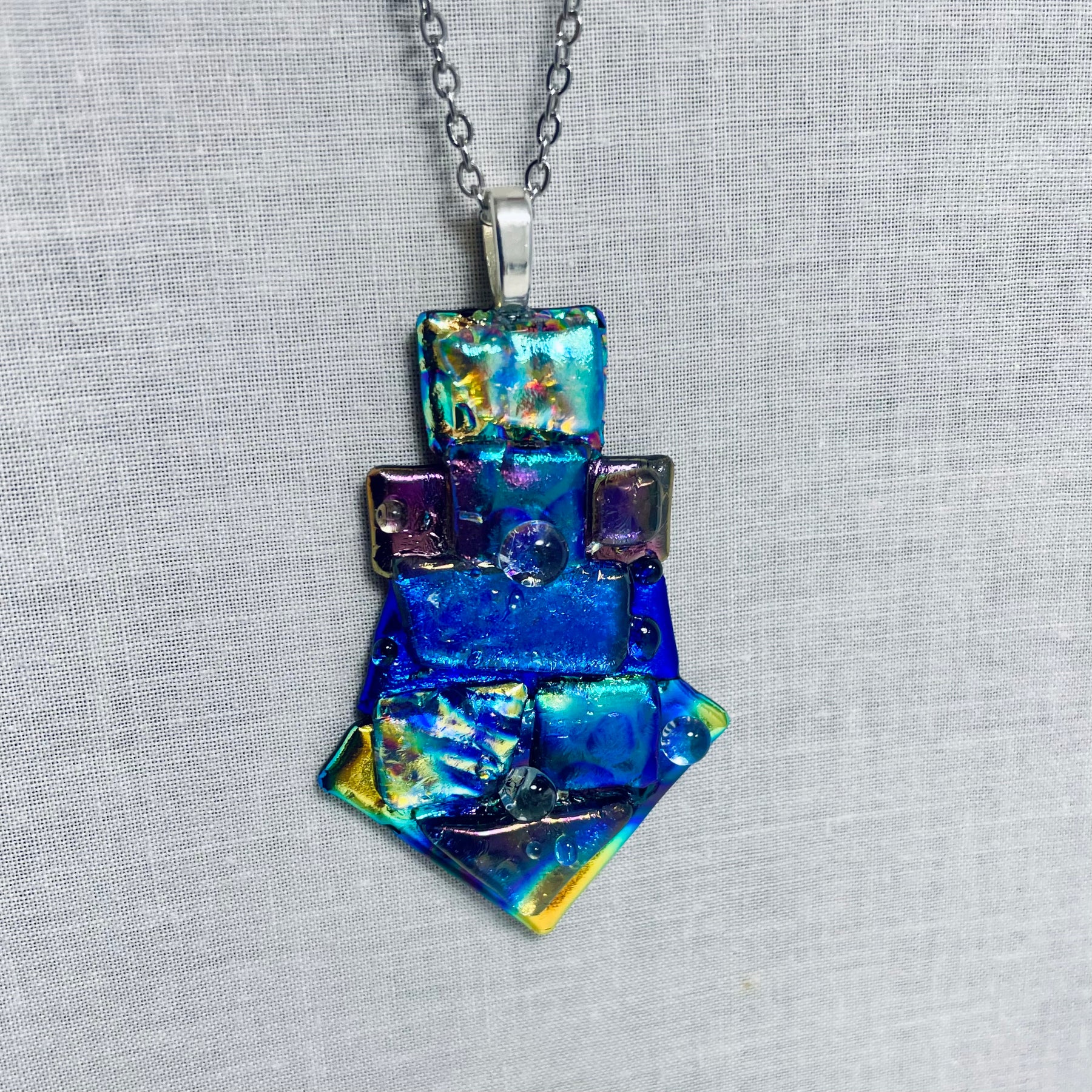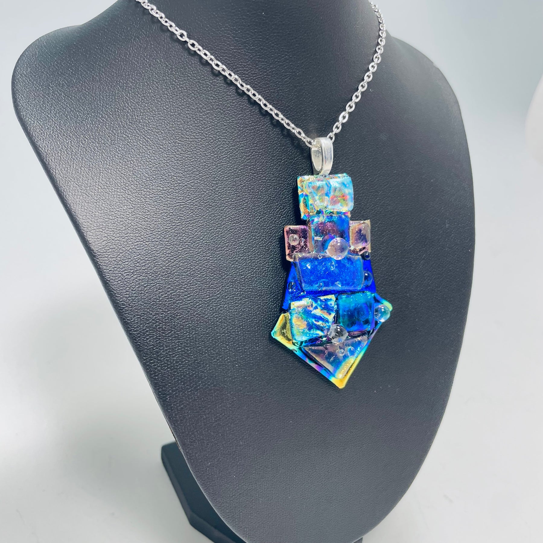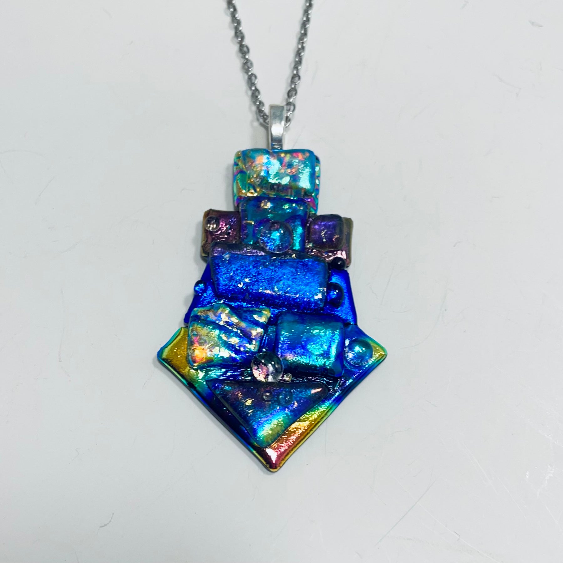 A beautiful abstract necklace made with sparkling dichroic glass and texture.