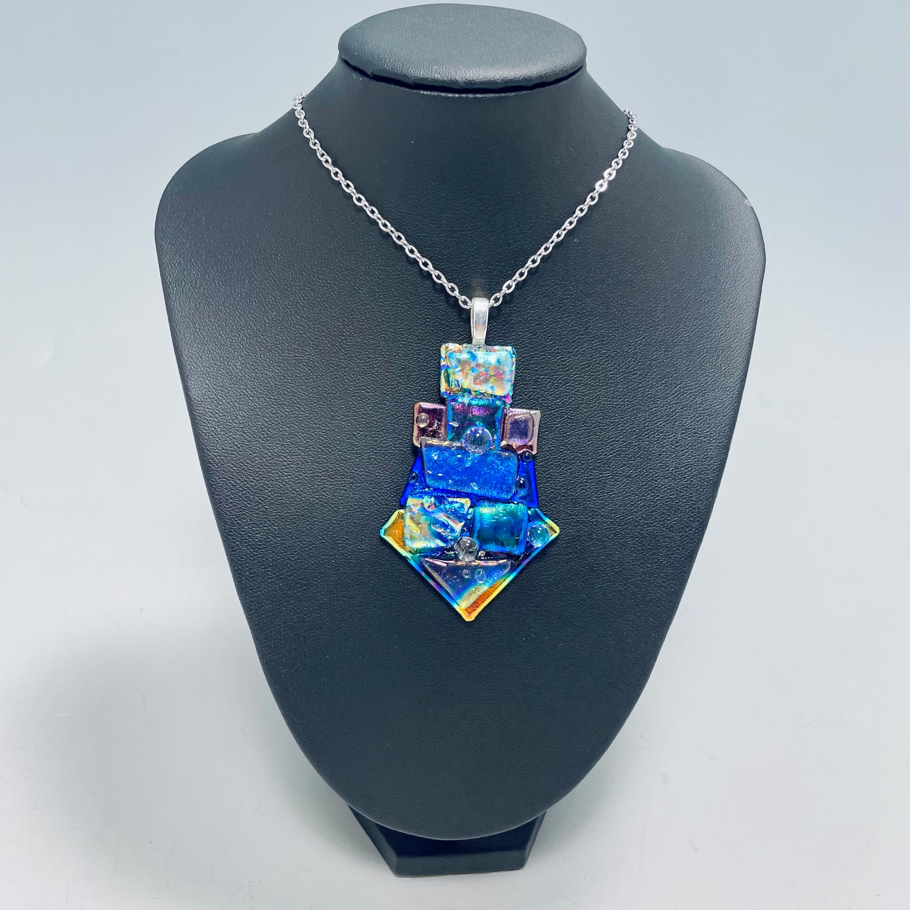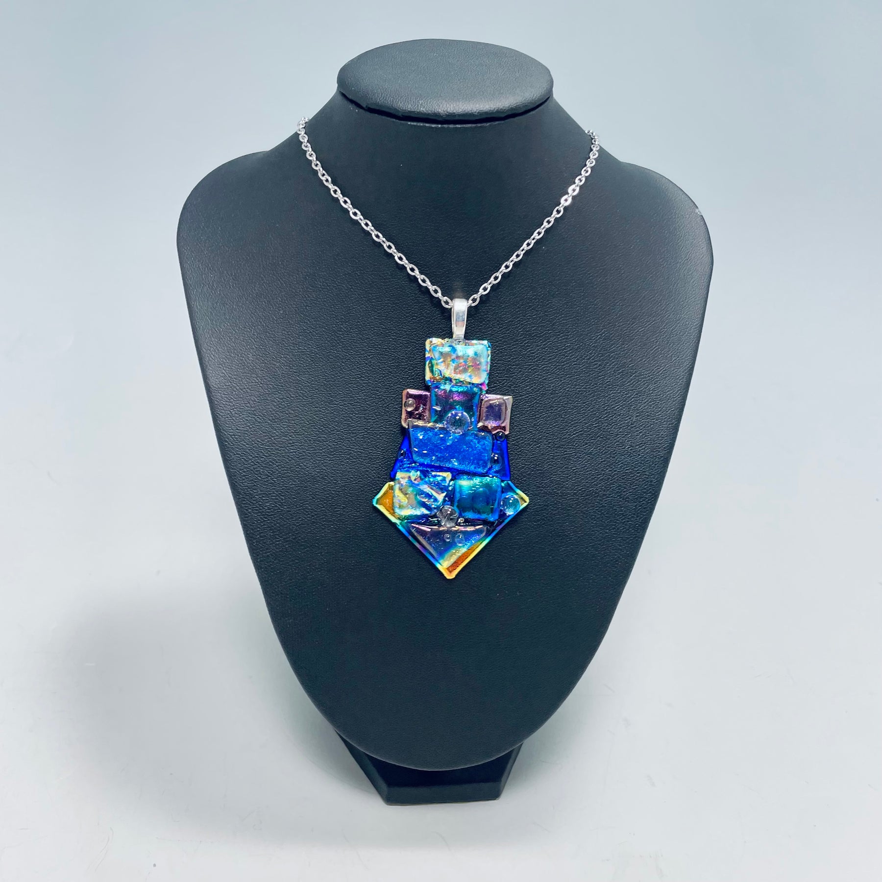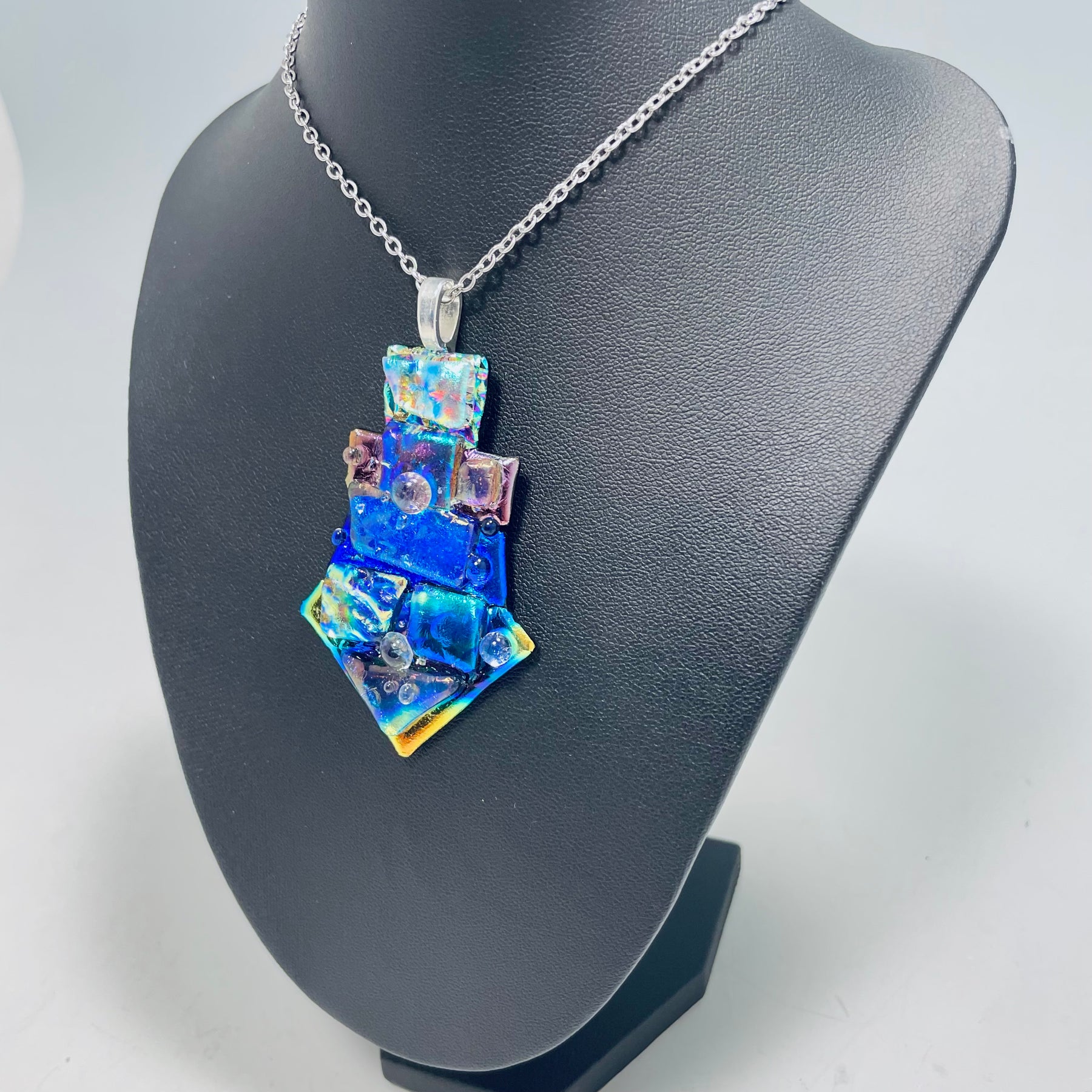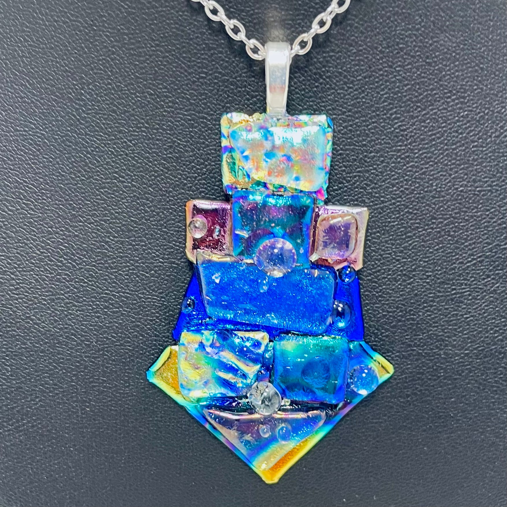 A beautiful abstract necklace made with sparkling dichroic glass and texture.