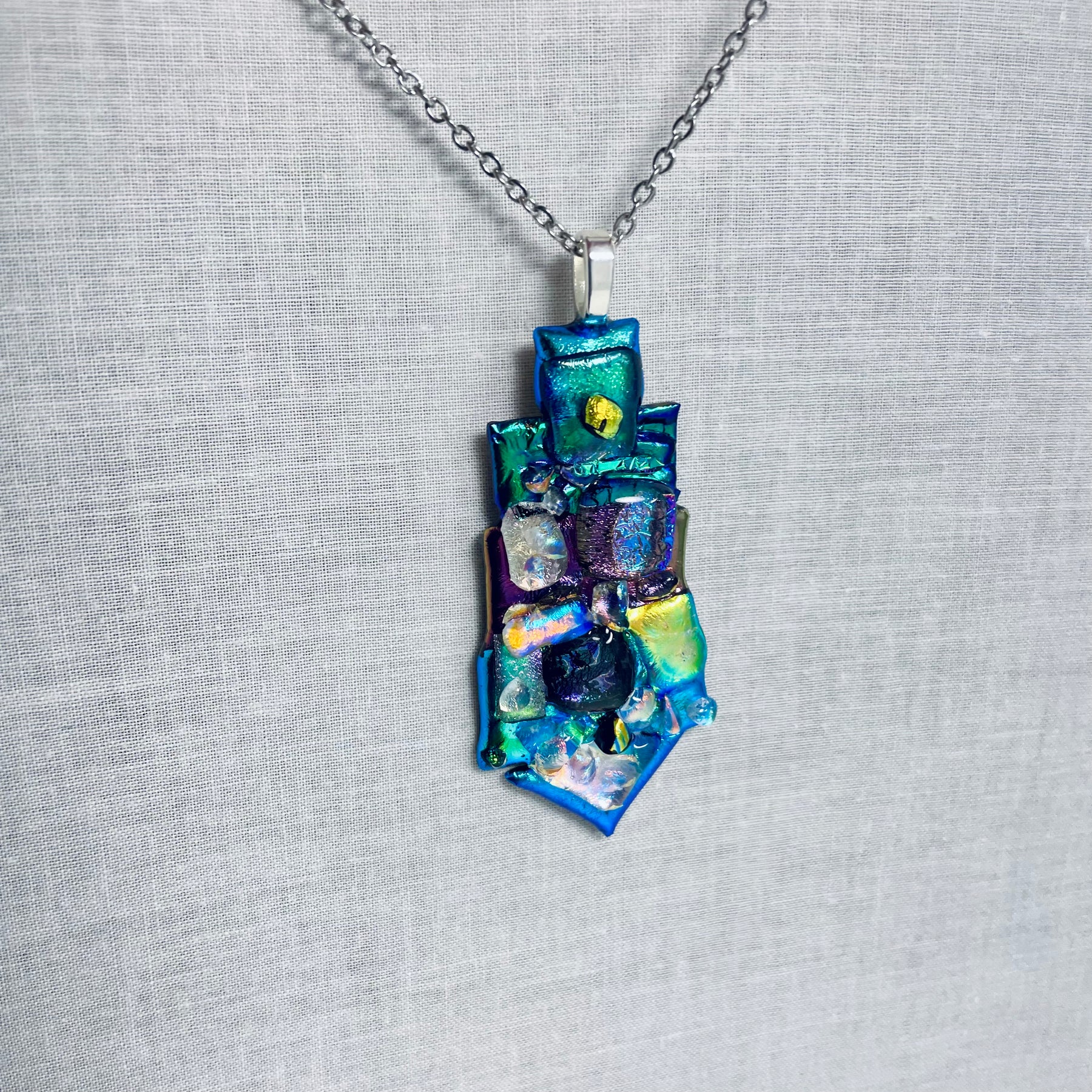 Beautiful Jewelry - Dichroic glass is fascinating as it sparkles and each individual dichroic glass has a transmitted color and a completely different reflected color, as certain wavelengths of light either pass through or are reflected.