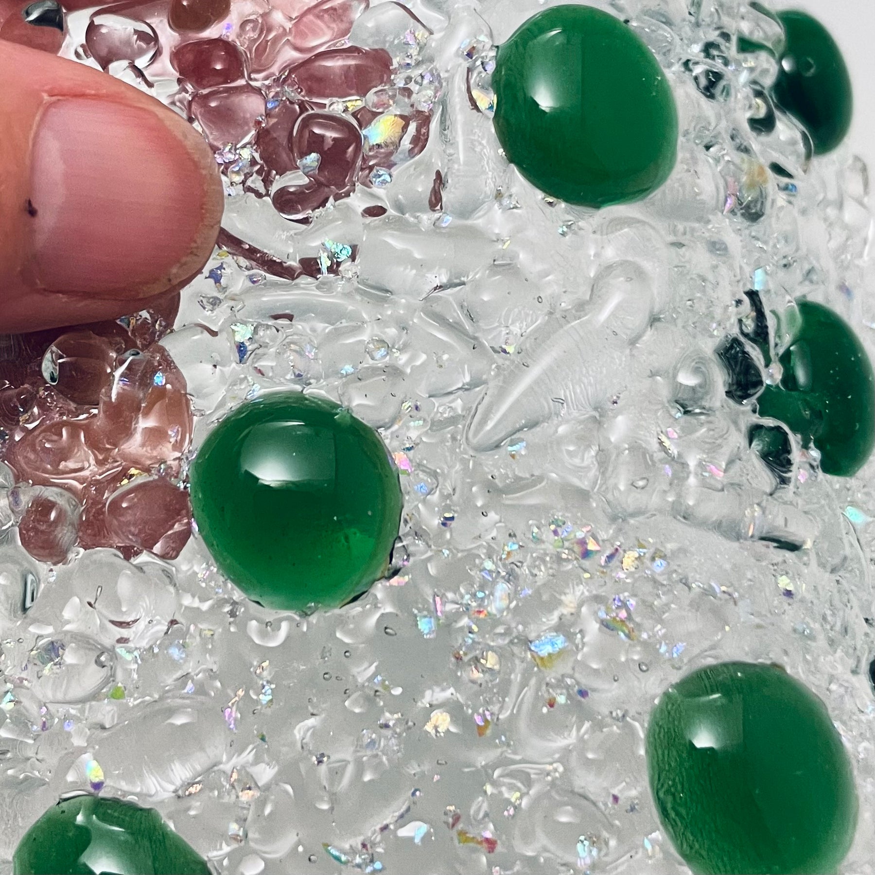 Inspiration: Colorful Reflections of green with bits of sparkle from light behind or in front with interesting patterns.