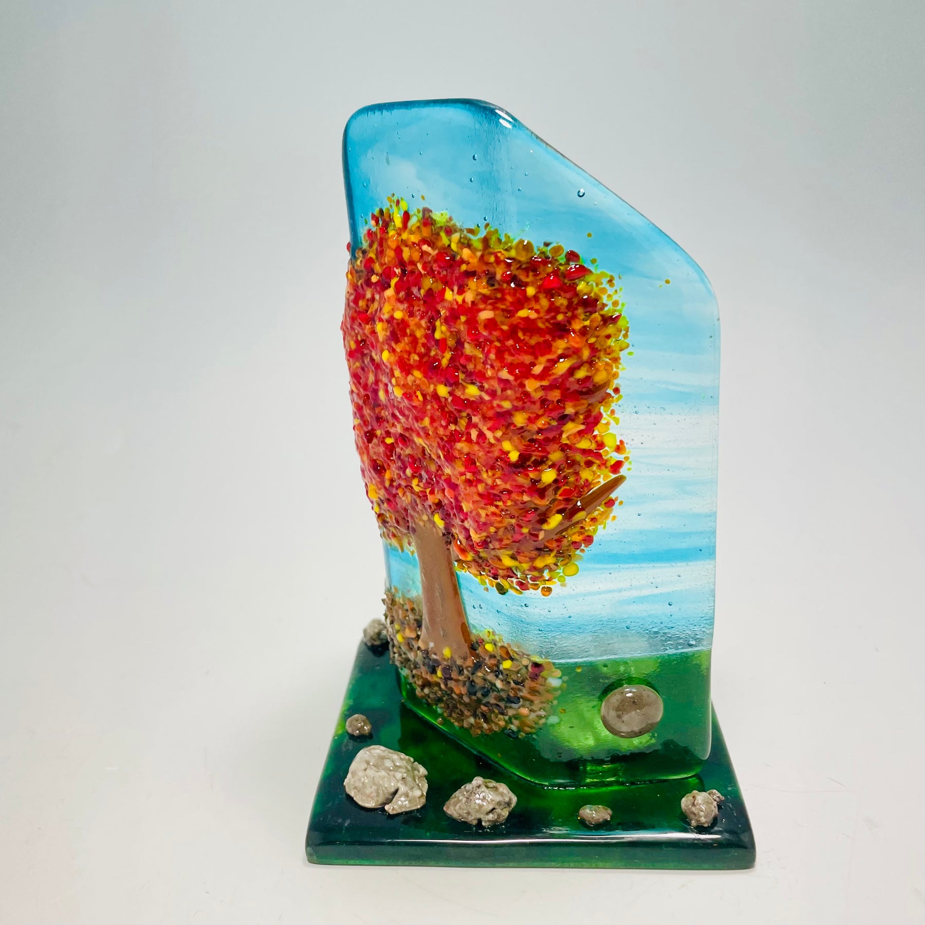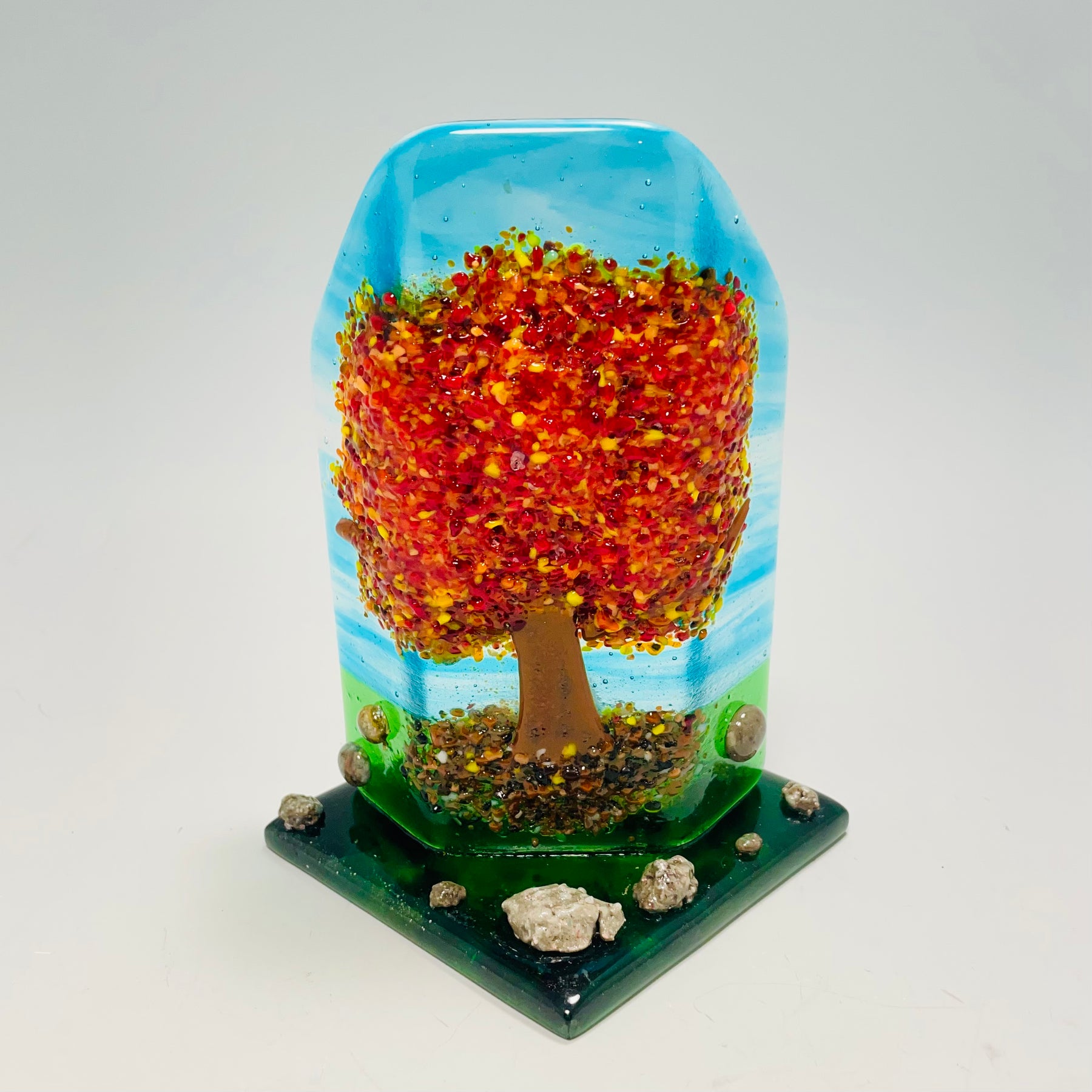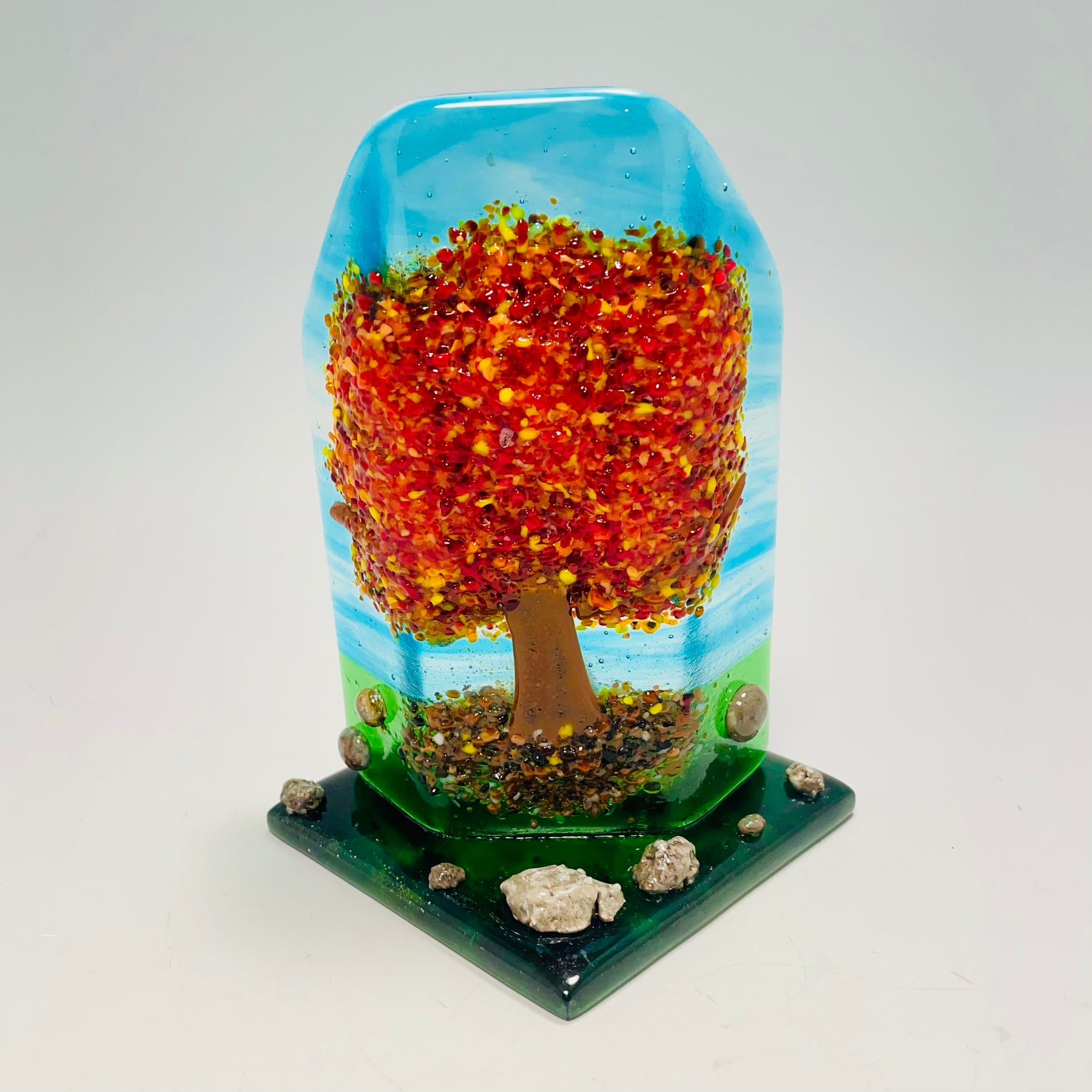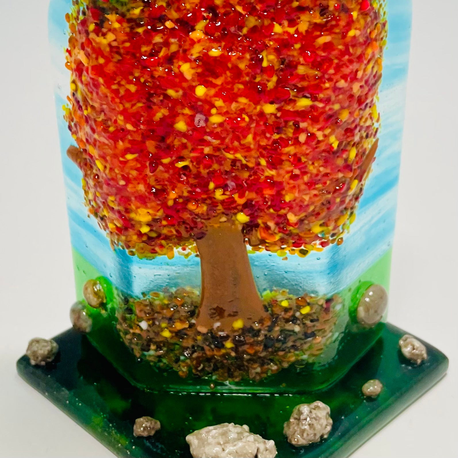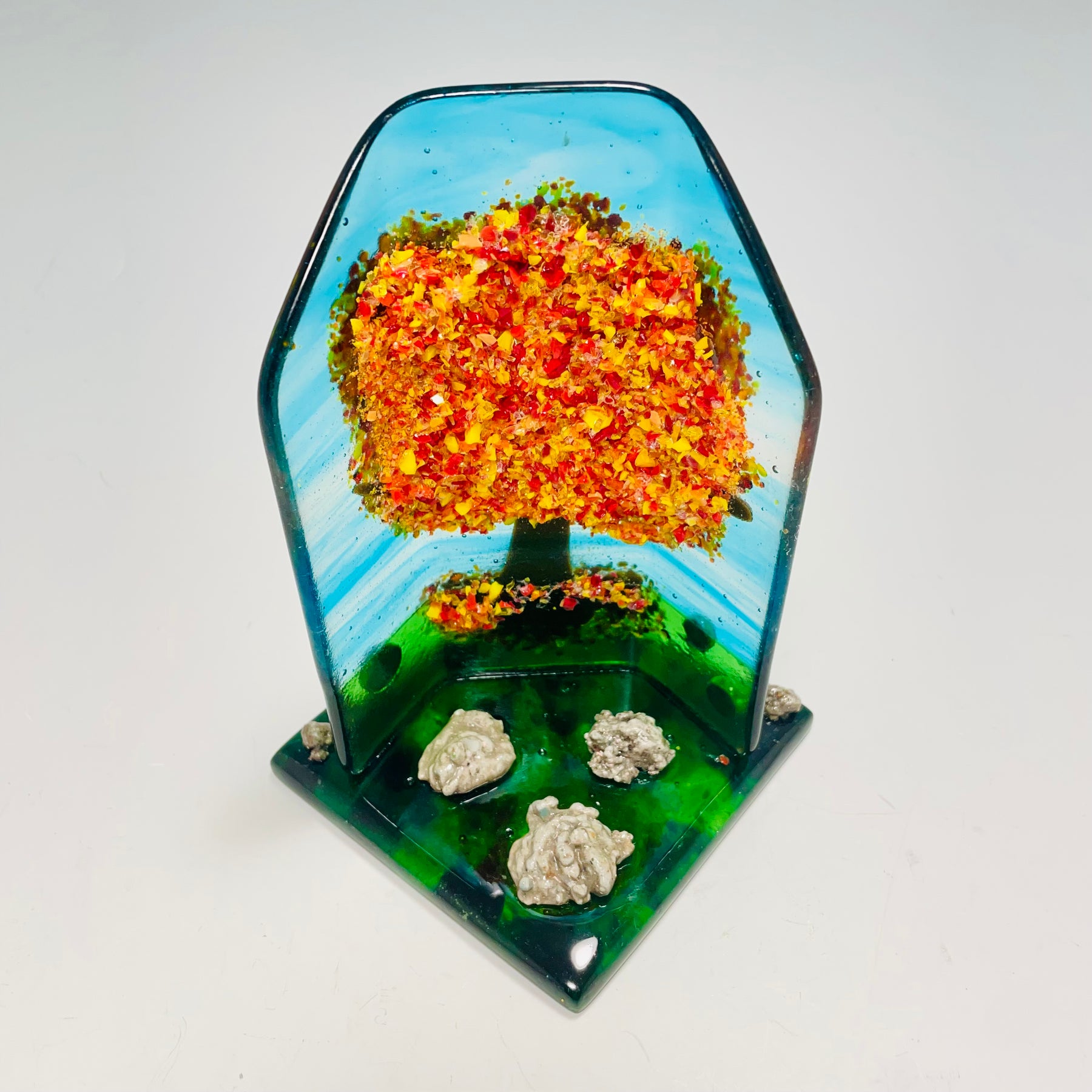 Inspired by the beauty of fall leaves. check out the glass rocks -- I especially love the colors achieved - what do you think?