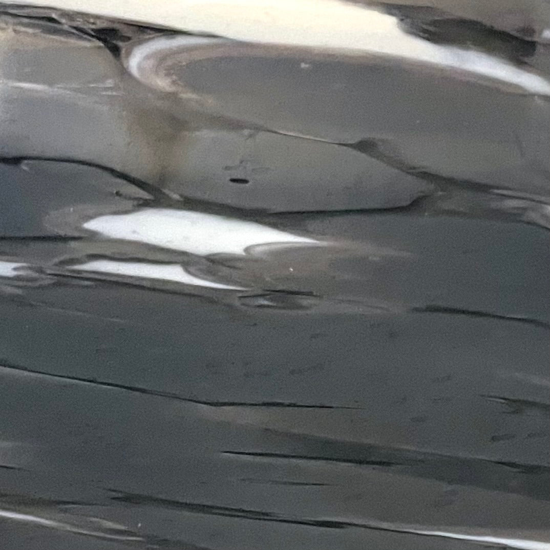 Artistic Process: It is made of hand cut glass in a layout to create a flow and pattern for a full fuse, after coldworking, the glass is firepolished.  The last step is to slump into a ceramic mold to achieve its final shape.
