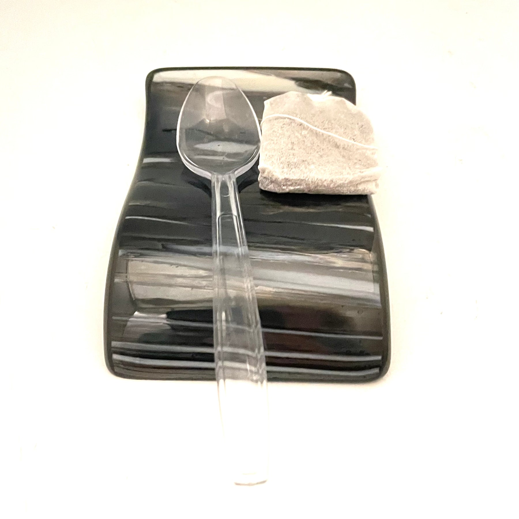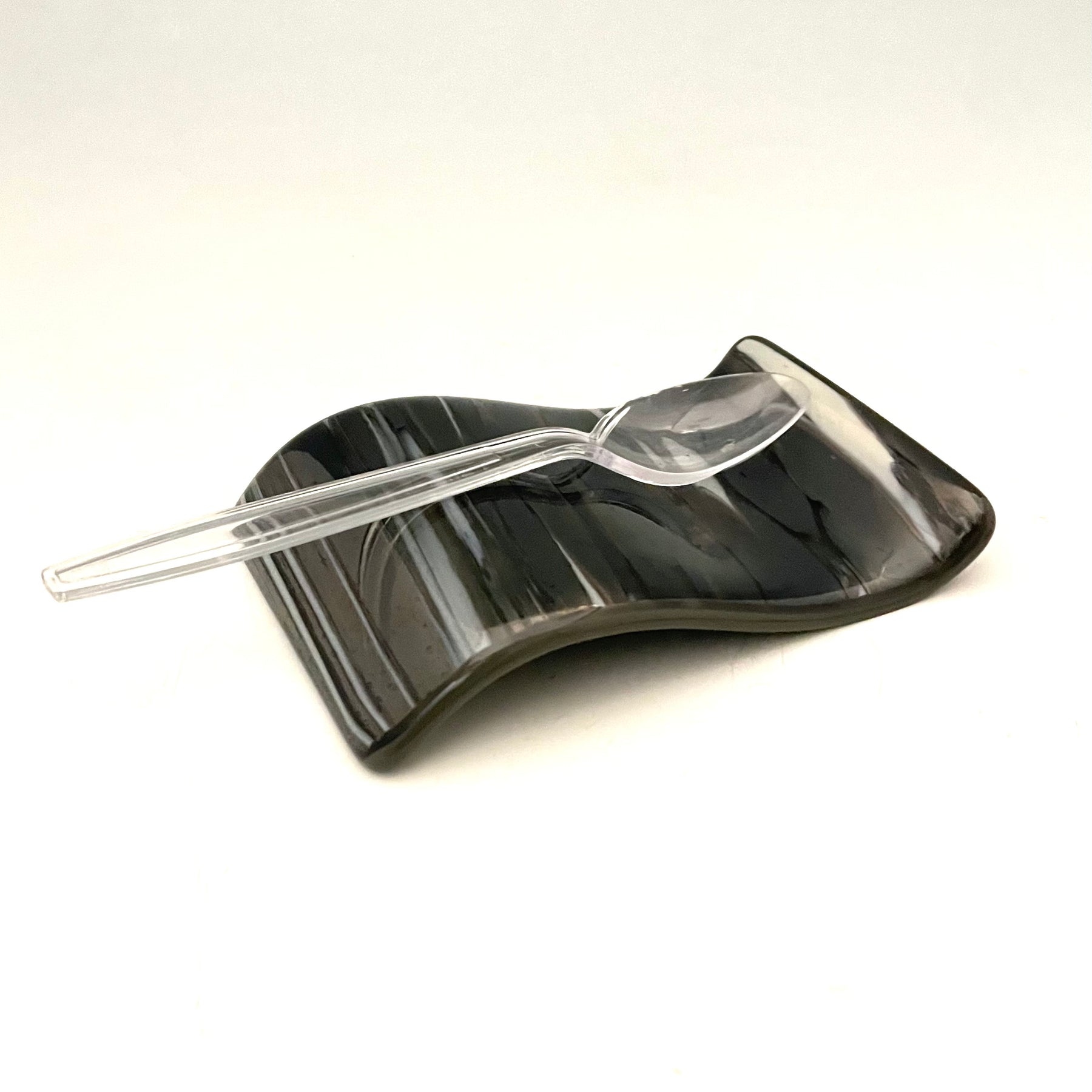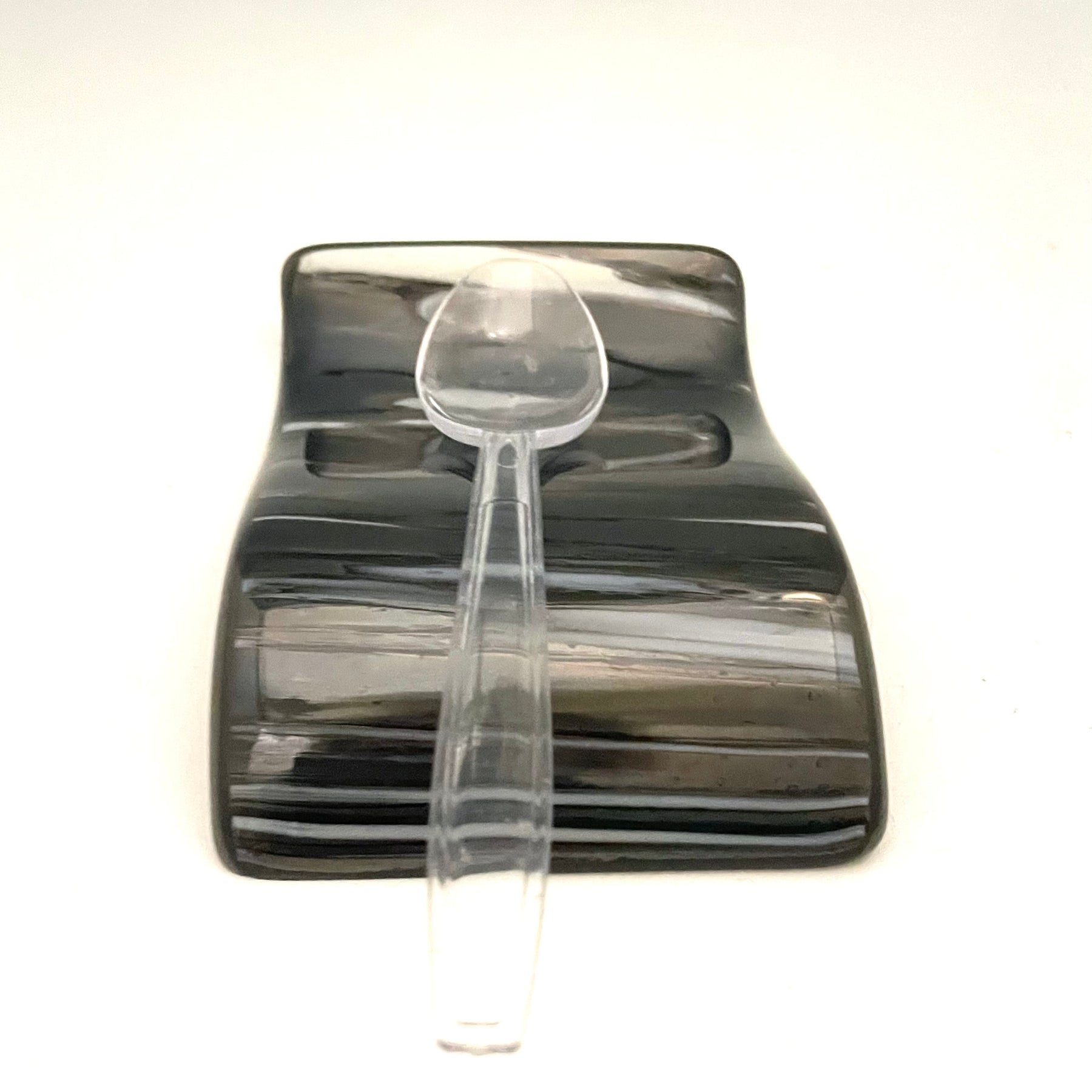 This small spoonrest has a unique modern design and is a beautiful addition to your kitchen decor.  The small spoonrests work well for small spoons or teabags.  They can be handy for keeping a spoon by your coffee machine.  It adds an artful color on the counter or any table.