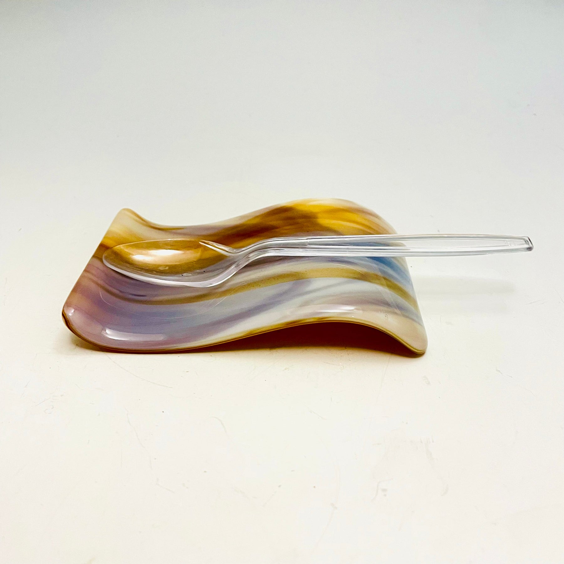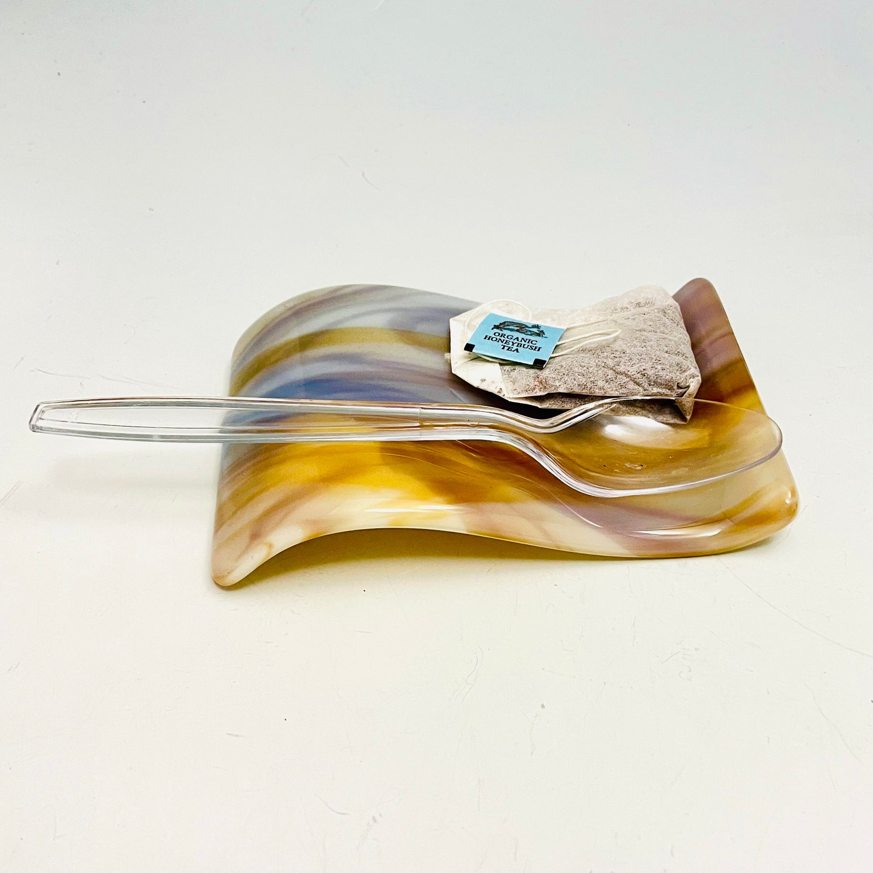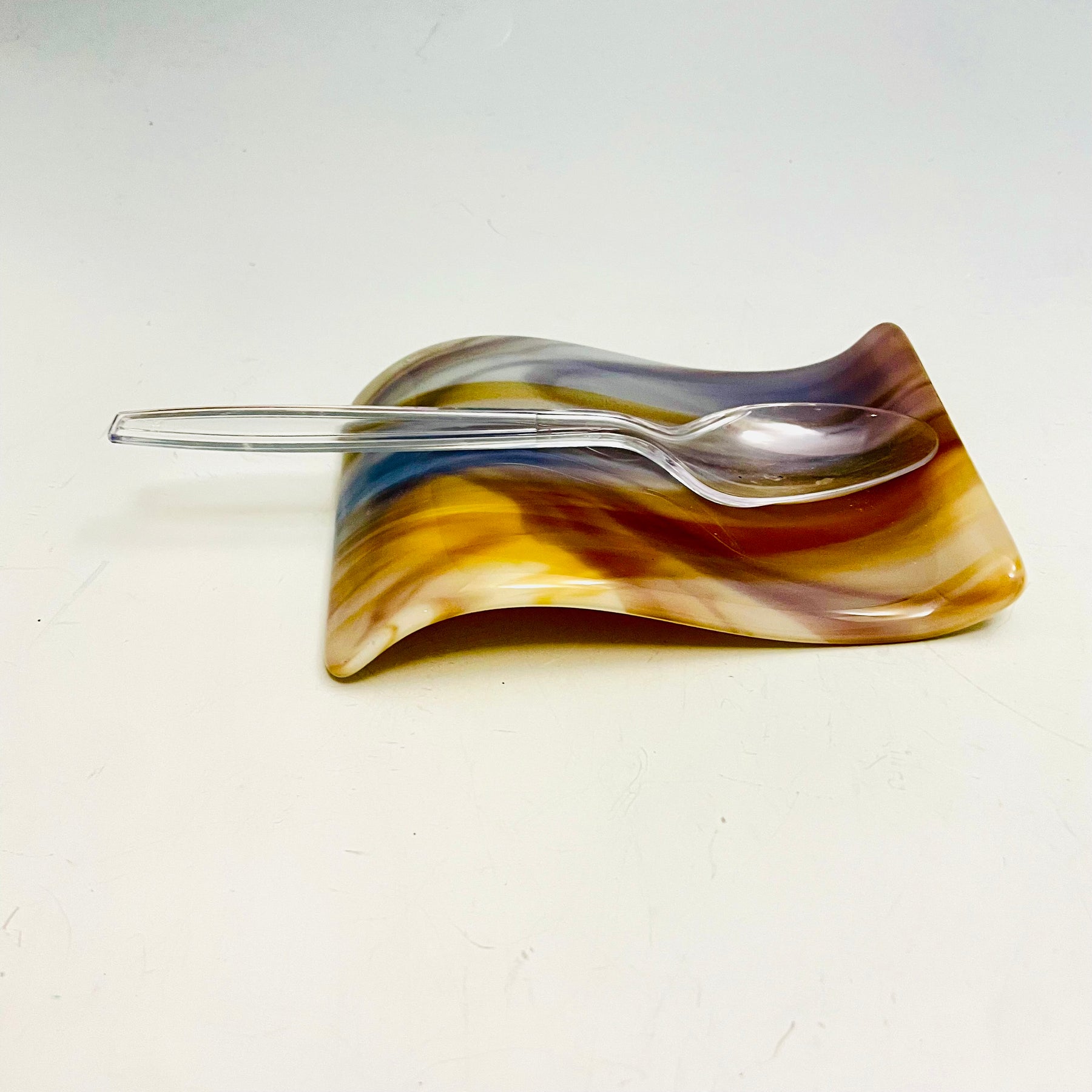 This small spoonrest has a unique modern design and is a beautiful addition to your kitchen decor.  The small spoonrests work well for small spoons or teabags.  They can be handy for keeping a spoon by your coffee machine.  It adds an artful color on the counter or any table.