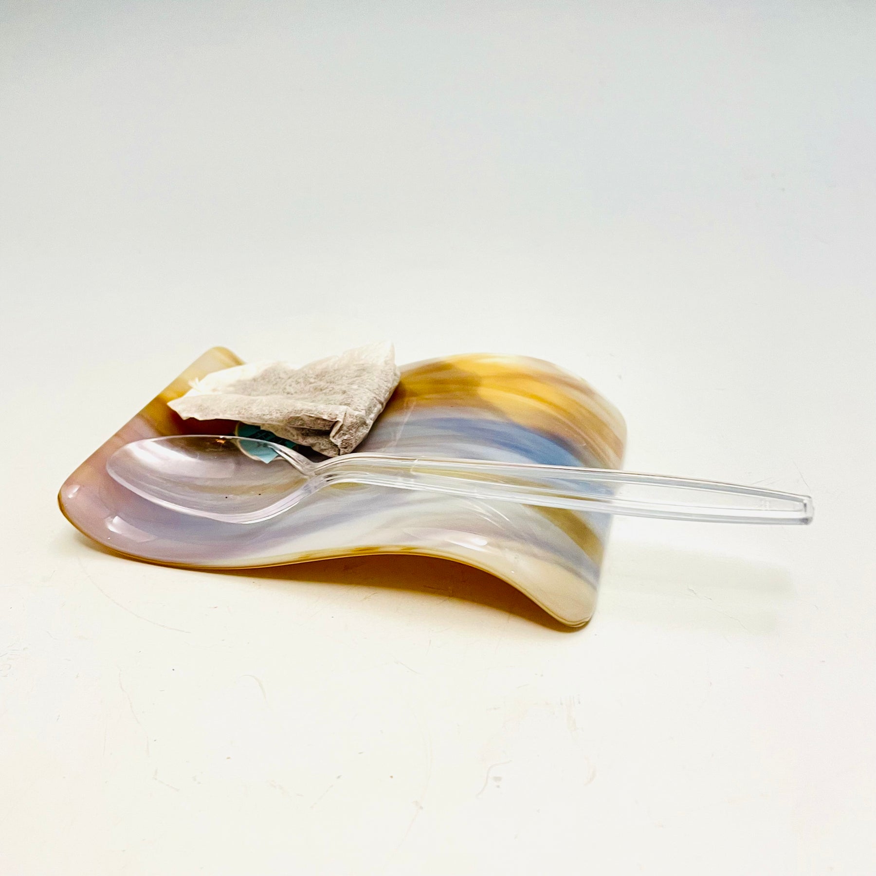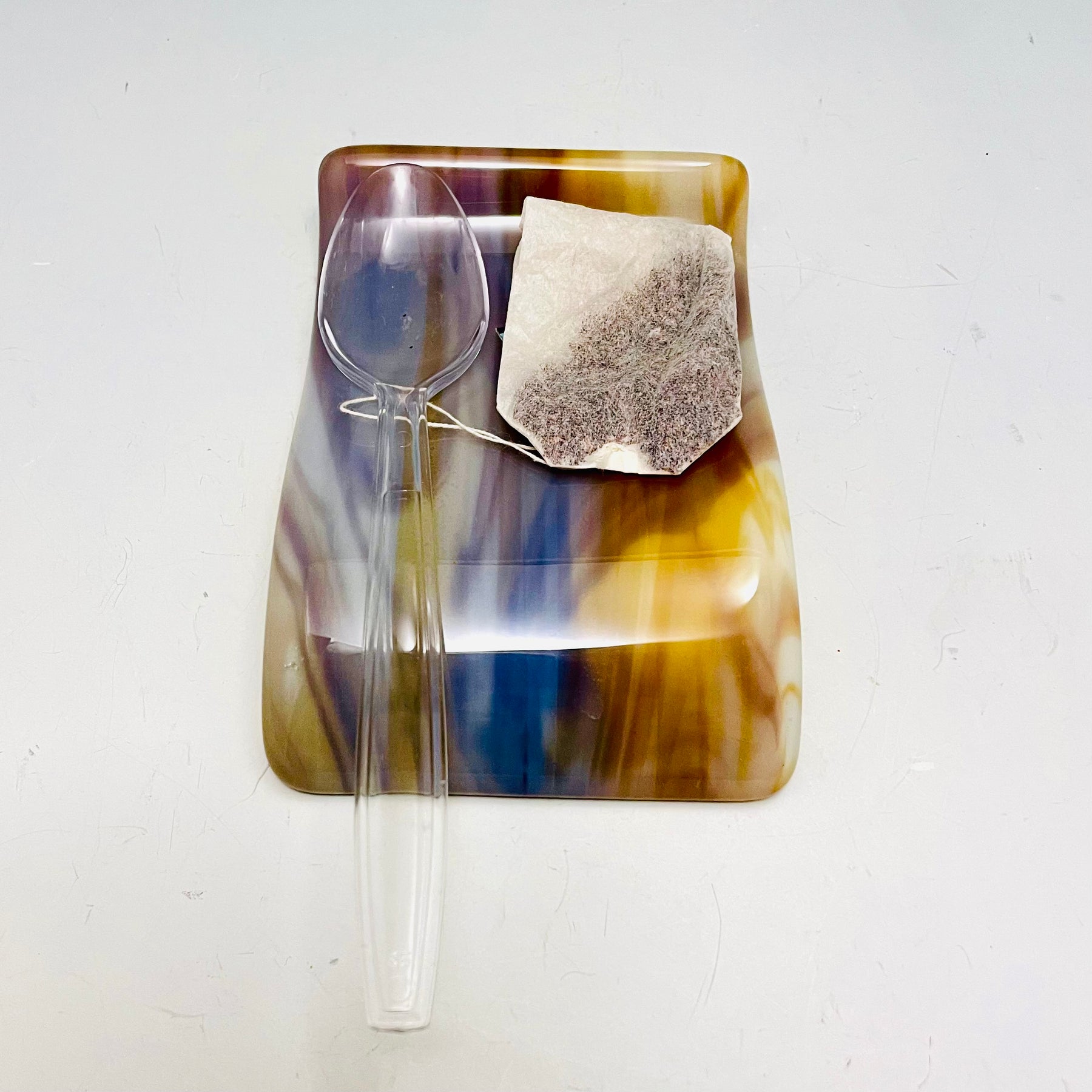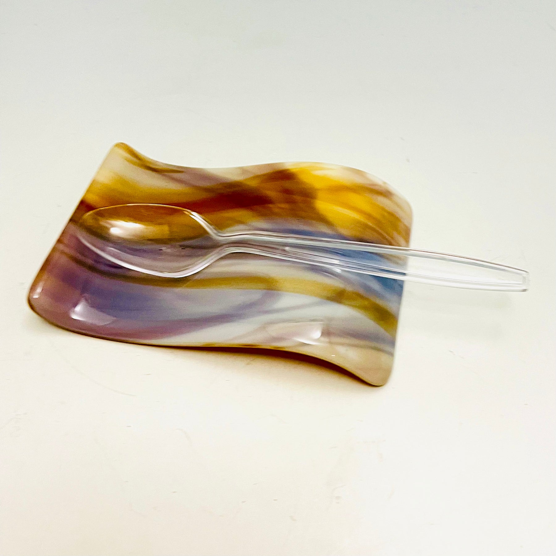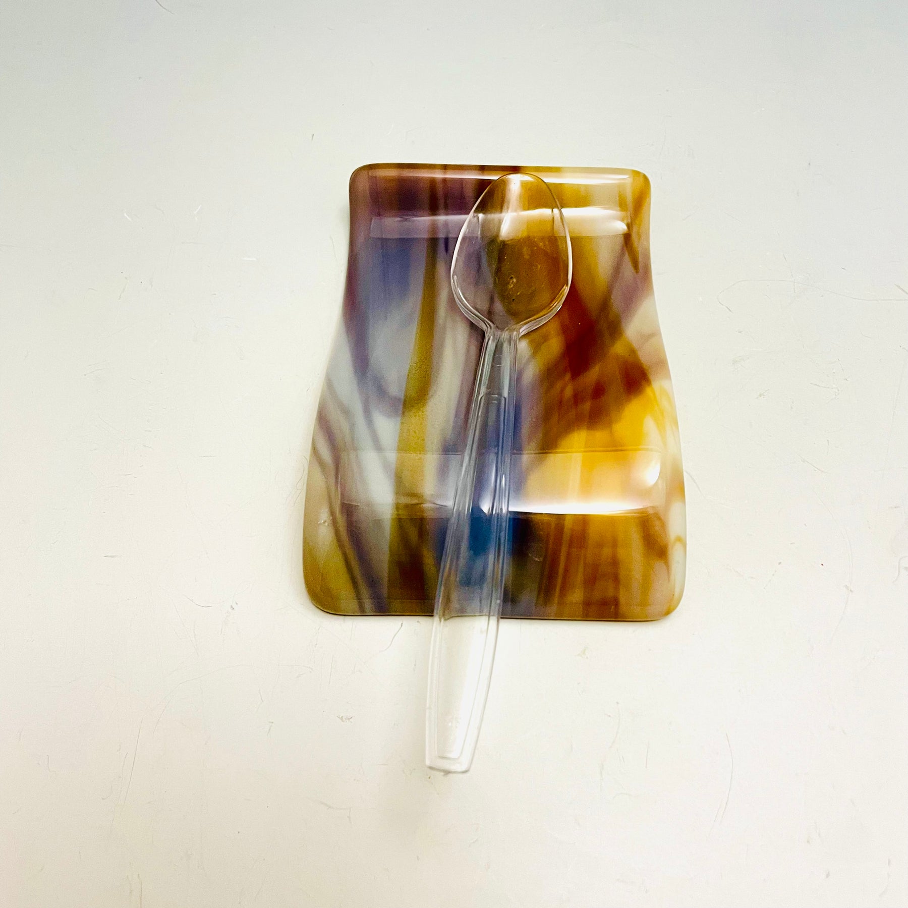This small spoonrest has a unique modern design and is a beautiful addition to your kitchen decor.  The small spoonrests work well for small spoons or teabags.  They can be handy for keeping a spoon by your coffee machine.  It adds an artful color on the counter or any table.