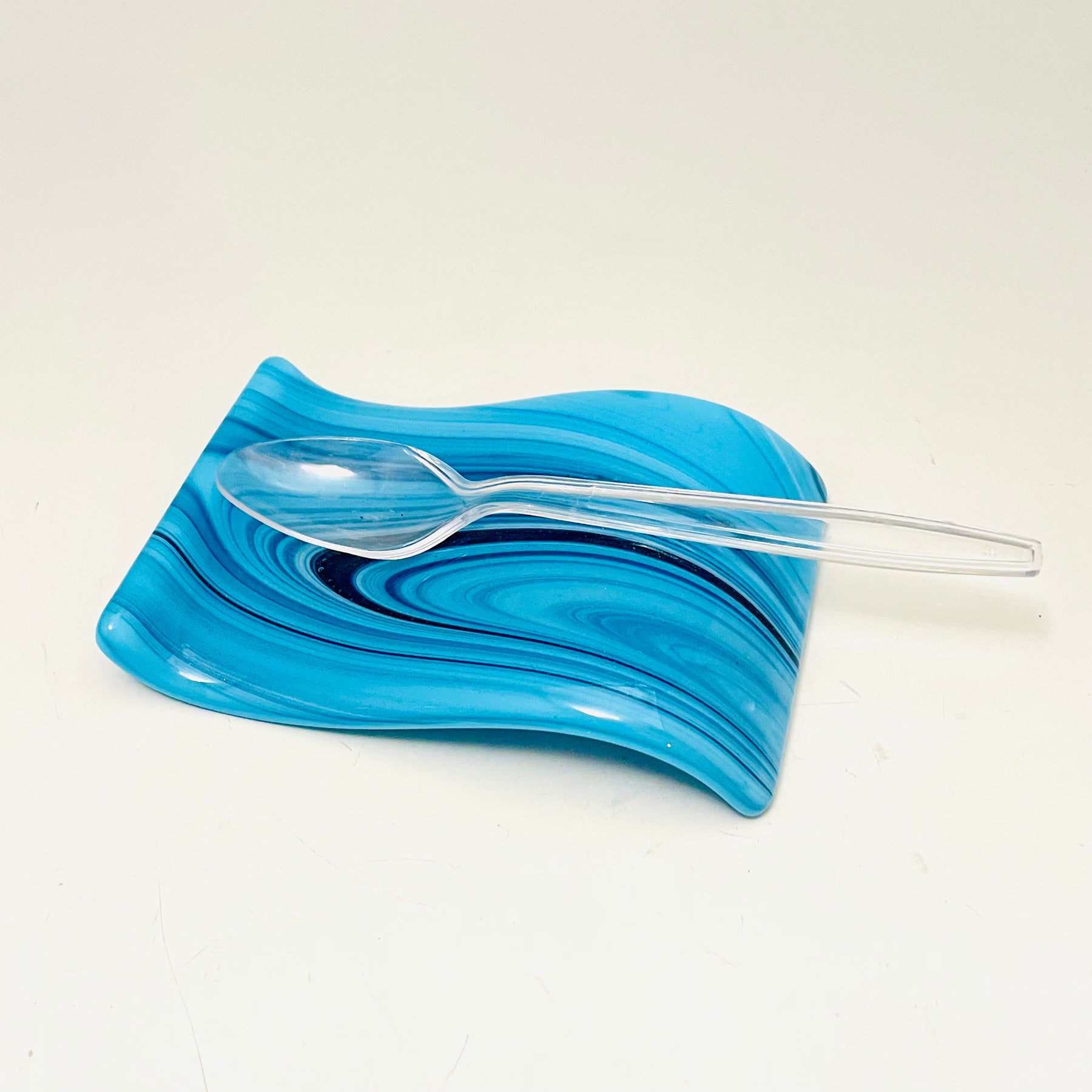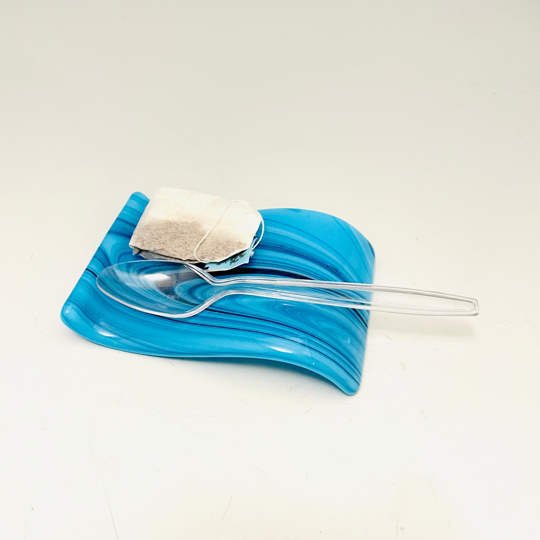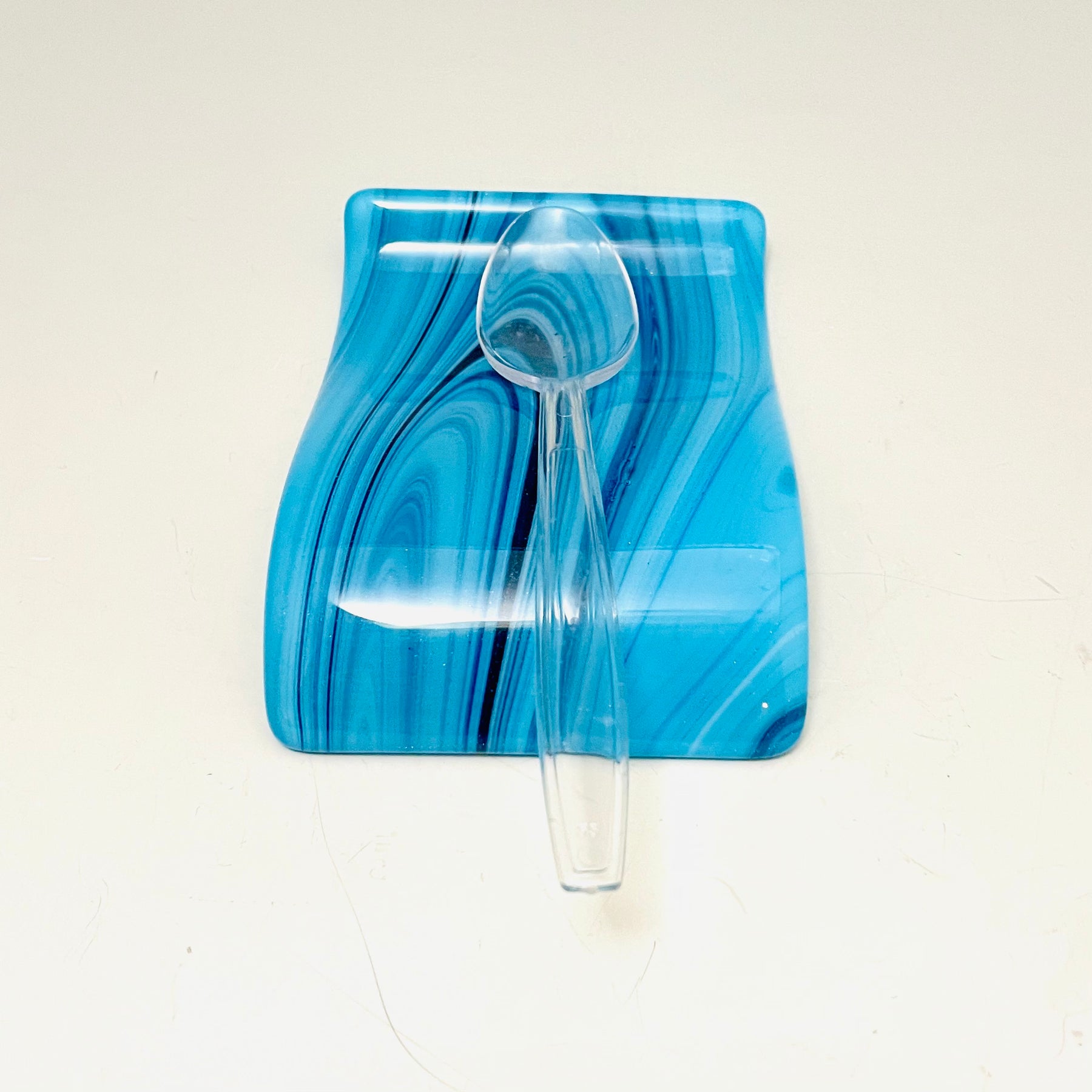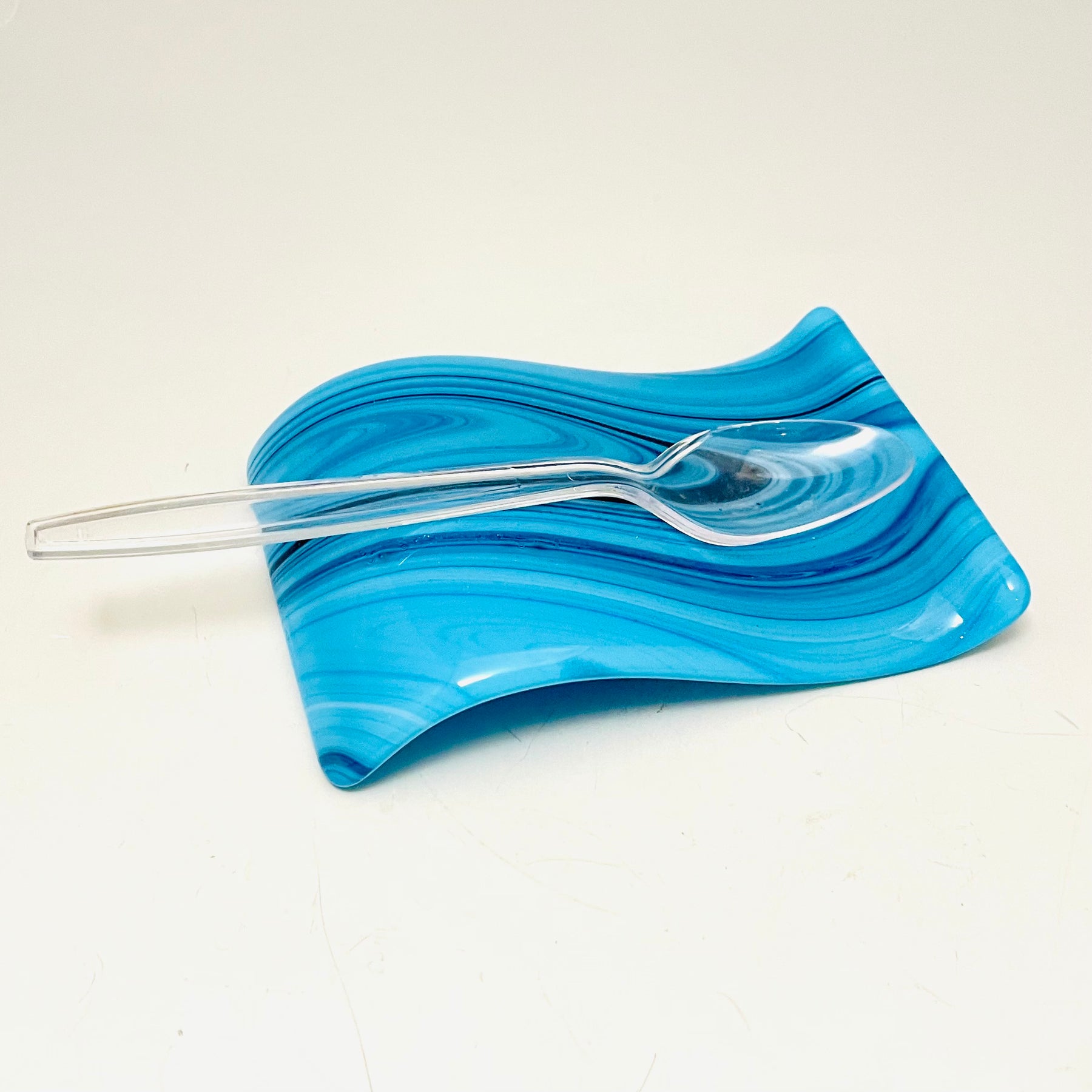 This small spoonrest has a unique modern design and is a beautiful addition to your kitchen decor.  The small spoonrests work well for small spoons or teabags.  They can be handy for keeping a spoon by your coffee machine.  It adds an artful color on the counter or any table.