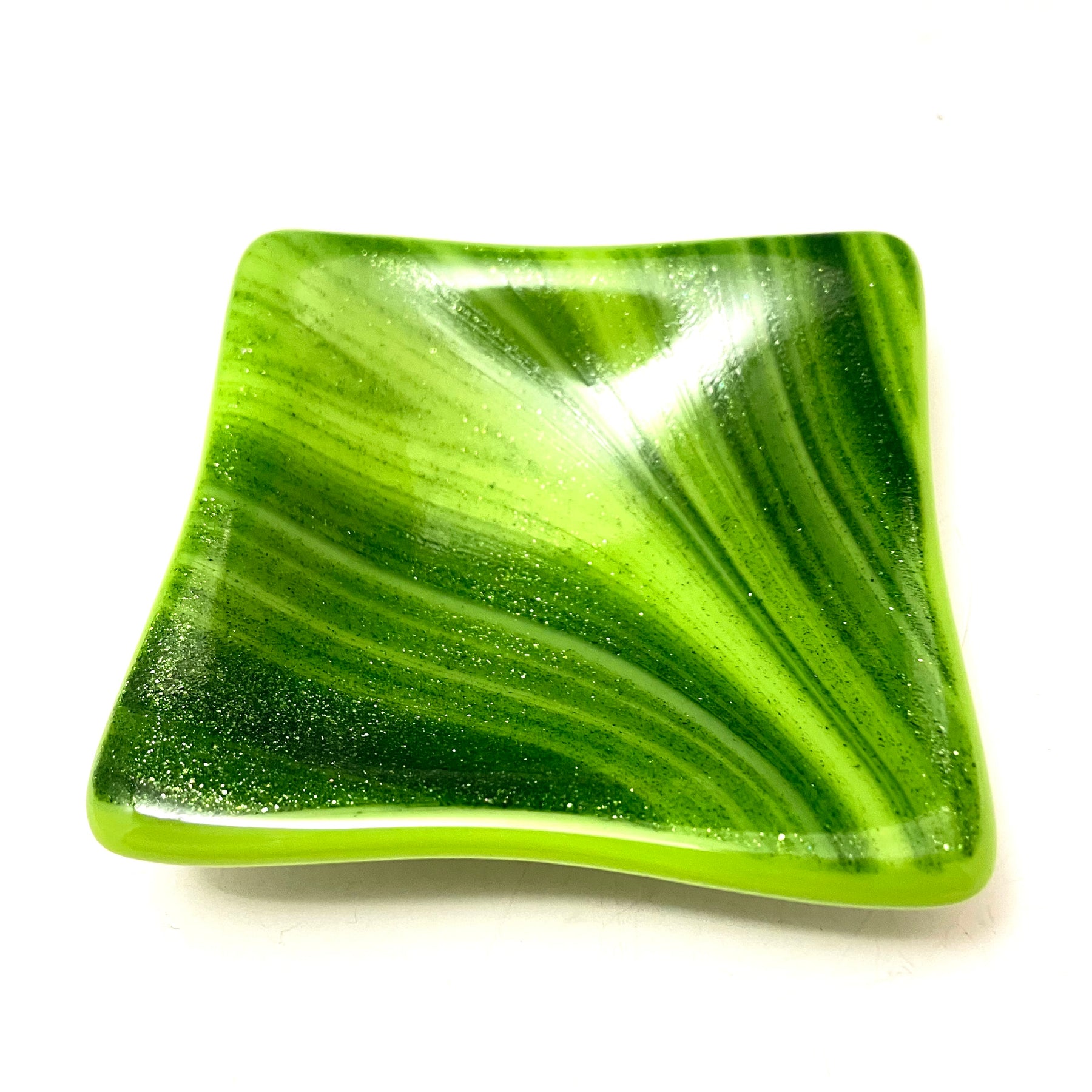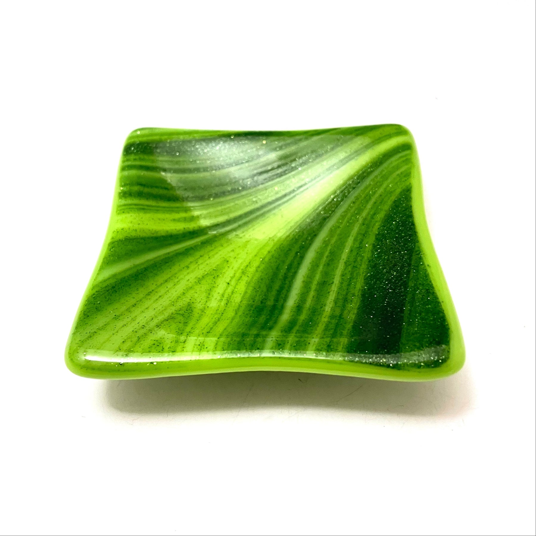 Shimmering Green Swirls Trinket Dish