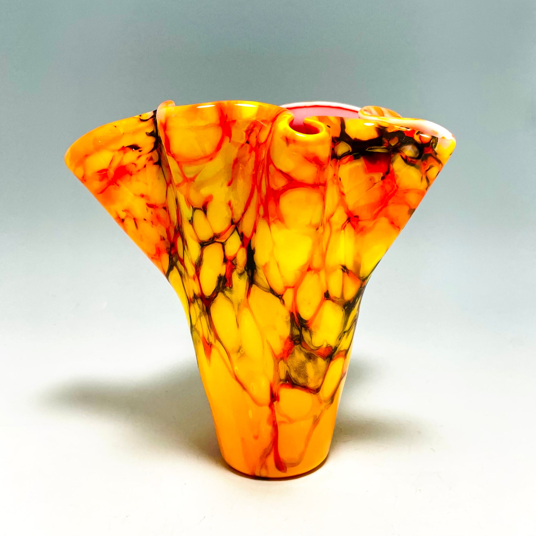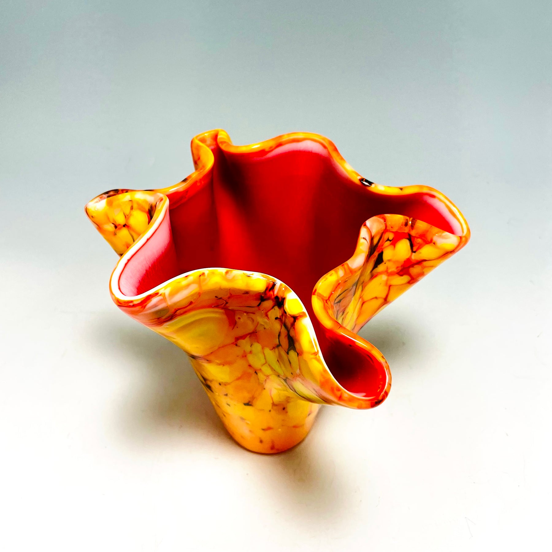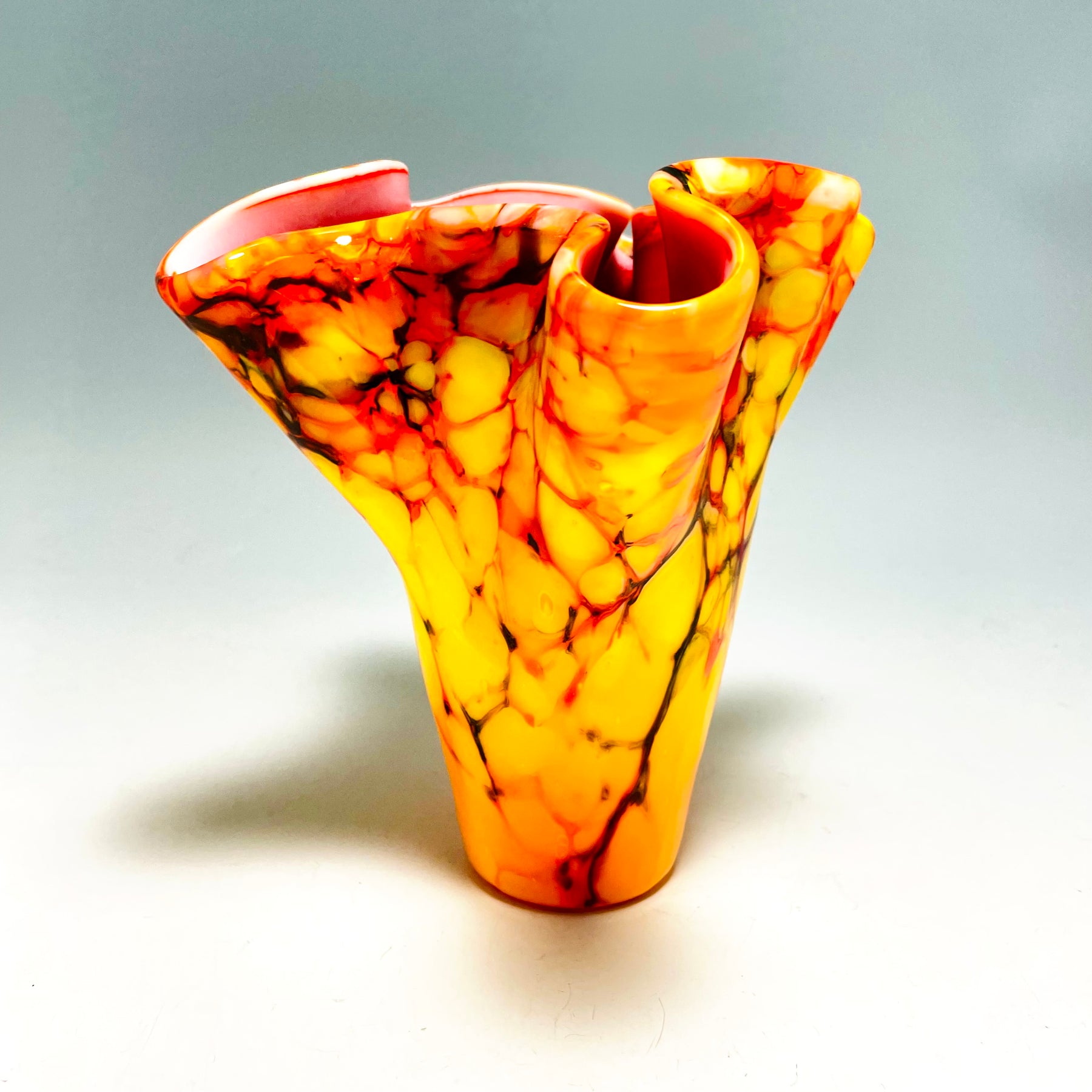 This Drape Vase is a beautiful addition to any home decor. It makes a special, unique, artisan made gift. It shines and reflects in the light too!