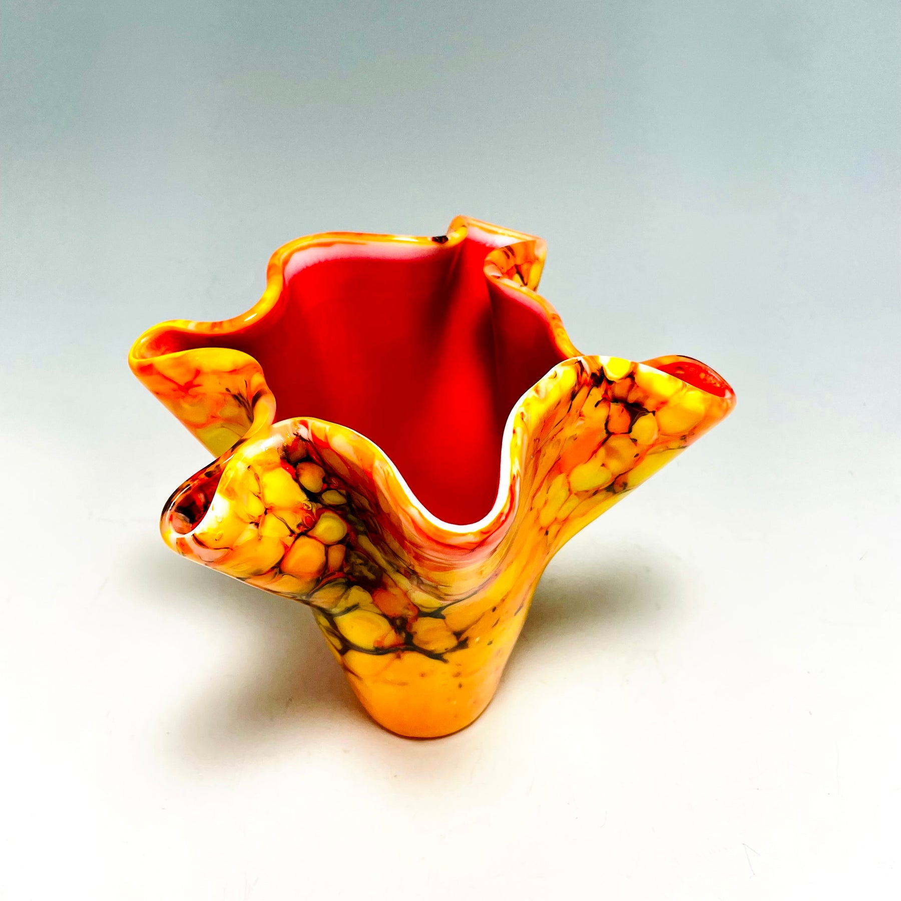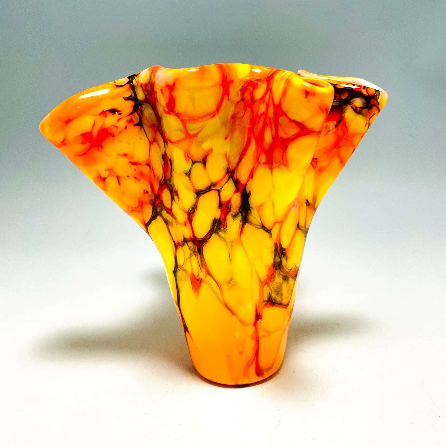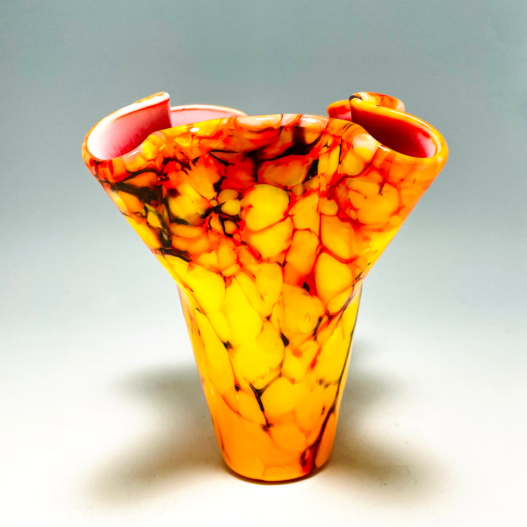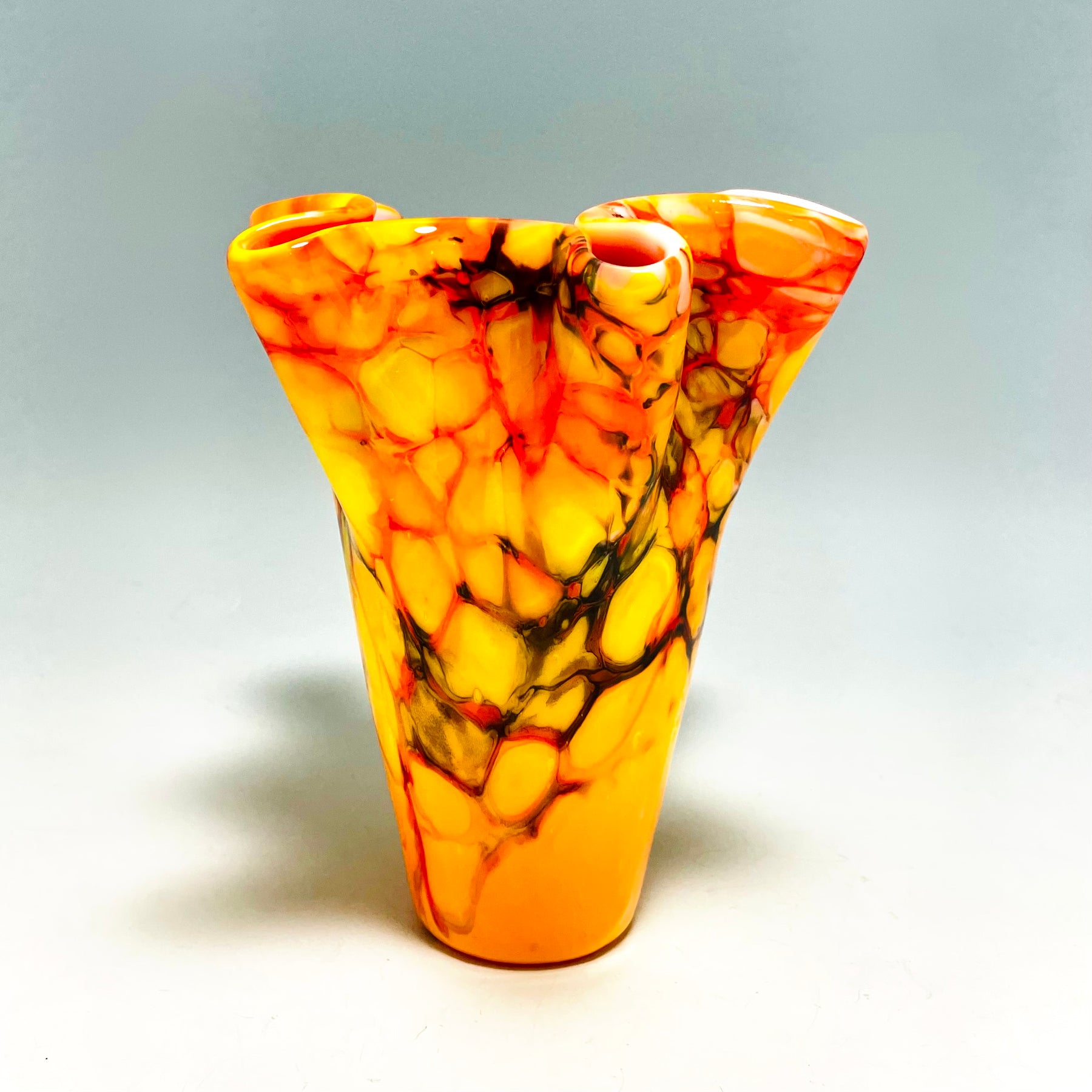 This Drape Vase is a beautiful addition to any home decor. It makes a special, unique, artisan made gift. It shines and reflects in the light too!